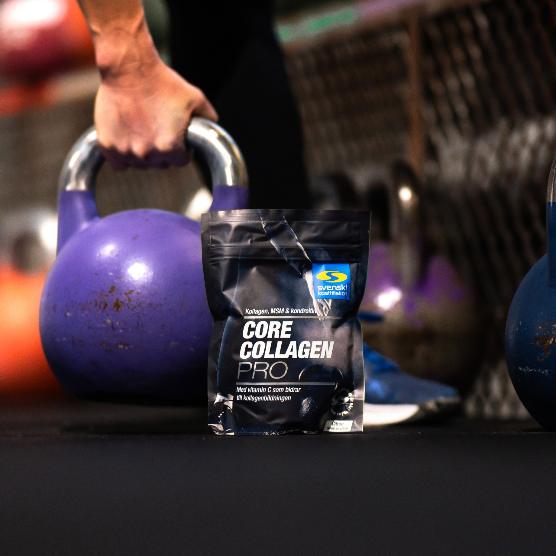 Core Collagen Pro er et unikt produkt, da det indeholder tre aktive ingredienser sammen med C-vitamin til bruskens og skelettets normale funktion. Disse tre aktive ingredienser er kollagen, MSM og chondroitinsulfat. Kollagen i Core Collagen Pro er en form af kollagen, der udvindes fra bovint. MSM er en forkortelse for methylsulfonylmethan, som er organisk svovl, der forekommer naturligt i vores kroppe. Svovl findes især i kroppens proteinrige væv såsom brusk, sener, muskler, skelet, hud, hår og negle. Derfor er MSM et almindeligt tilskud i produkter til led, hud, hår og negle. Chondroitinsulfat er også et almindeligt forekommende stof i kroppens led, og derfor findes det ofte i tilskud til samme formål. Chondroitinsulfat har primært to formål: at fungere som en stabilisator i bindevævet ved at smøre og beskytte bindevævet mod ydre belastninger. Det hjælper også med at bevare brusken ved at fungere som byggesten og beskytte det mod nedbrydende enzymer. Chondroitinsulfatet i Core Collagen Pro stammer fra brusk fra kylling.