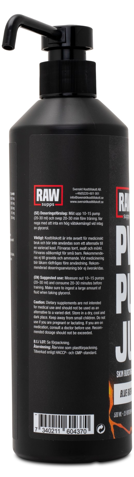 RAW PWO Pump Juice er til dig, der virkelig vil mærke trykket! Det giver dig pump på to måder: muskelpumpen, du jagter i fitnesscenteret og det færdiglavede shot direkte fra pumpeflasken. RAW PWO Pump Juice kombinerer glycerol, citrullin og AAKG for maksimalt tryk i hver repetition, med årer der popper og muskler, der føles fyldige, for en følelse af rå styrke - helt uden koffein. Smagen Blue Raspberry er sur og salt for et ordentligt kick!