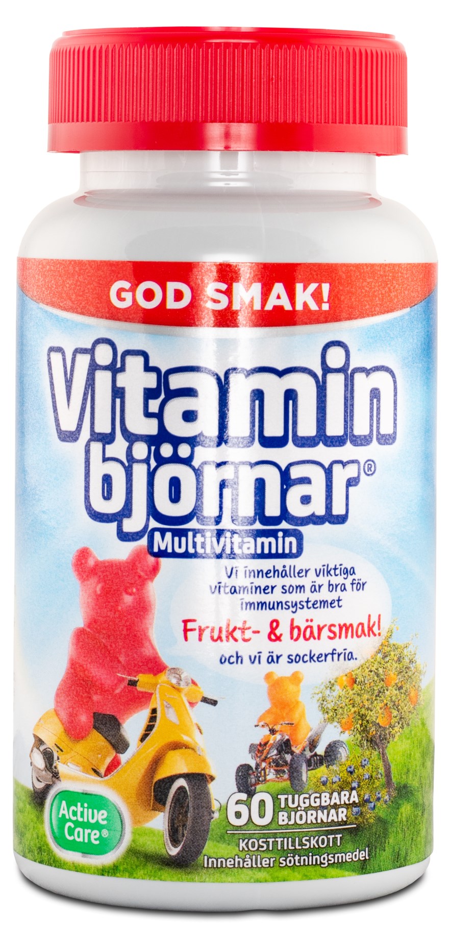 Active Care Vitaminbjørne er et alsidigt supplement af vitaminer i din daglige kost. Vitaminbjørne gør det lettere at indtage vitaminer dagligt, både fordi du ikke glemmer dem, og fordi de smager godt. Det er vigtigt for alle at få de næringsstoffer, du har brug for hver dag. Vitaminbjørne hjælper dig på vej.