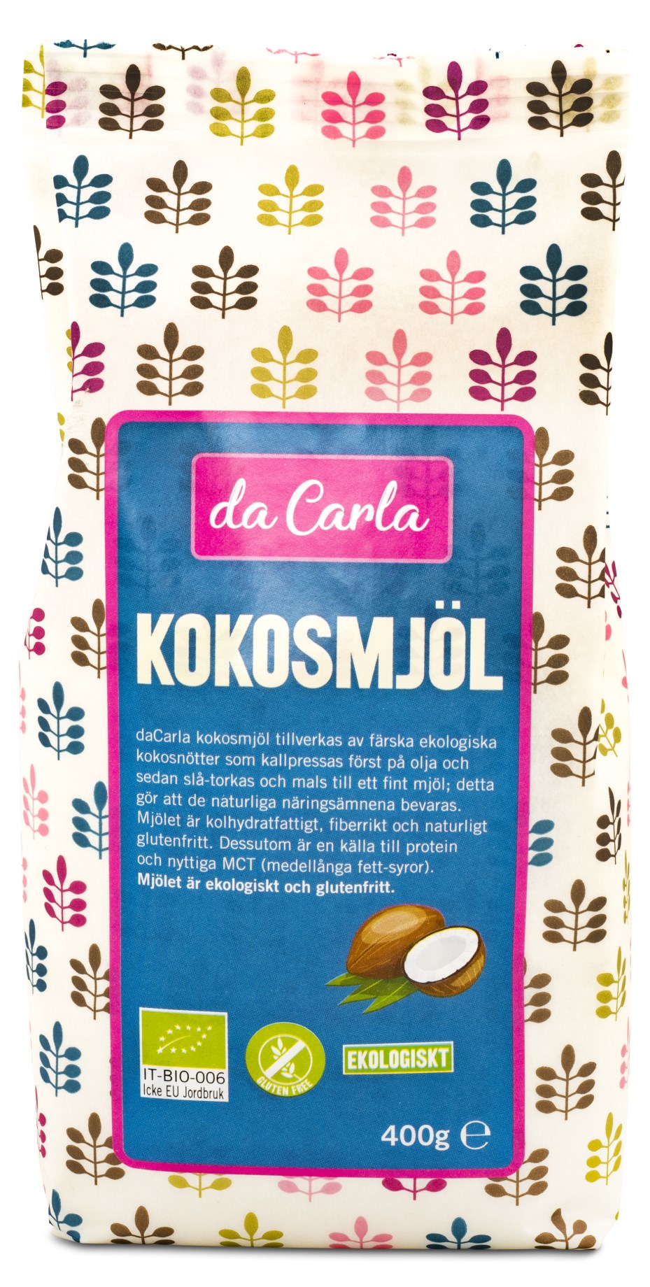 da Carla Kokosmel ØKO er lavet af friske økologiske kokosnødder, der koldpresses på olie og formales til et fint mel. Melet er rig på næringsstoffer og nyttige fedtsyrer og er samtidig naturligt glutenfrit og kulhydratfattig. Kokosmel er derfor et godt alternativ til hvedemel for dig, der er følsom overfor eller ønsker at undgå gluten. Du kan også tilføje noget kokosmel til din smoothie eller grød for et fibertilskud.