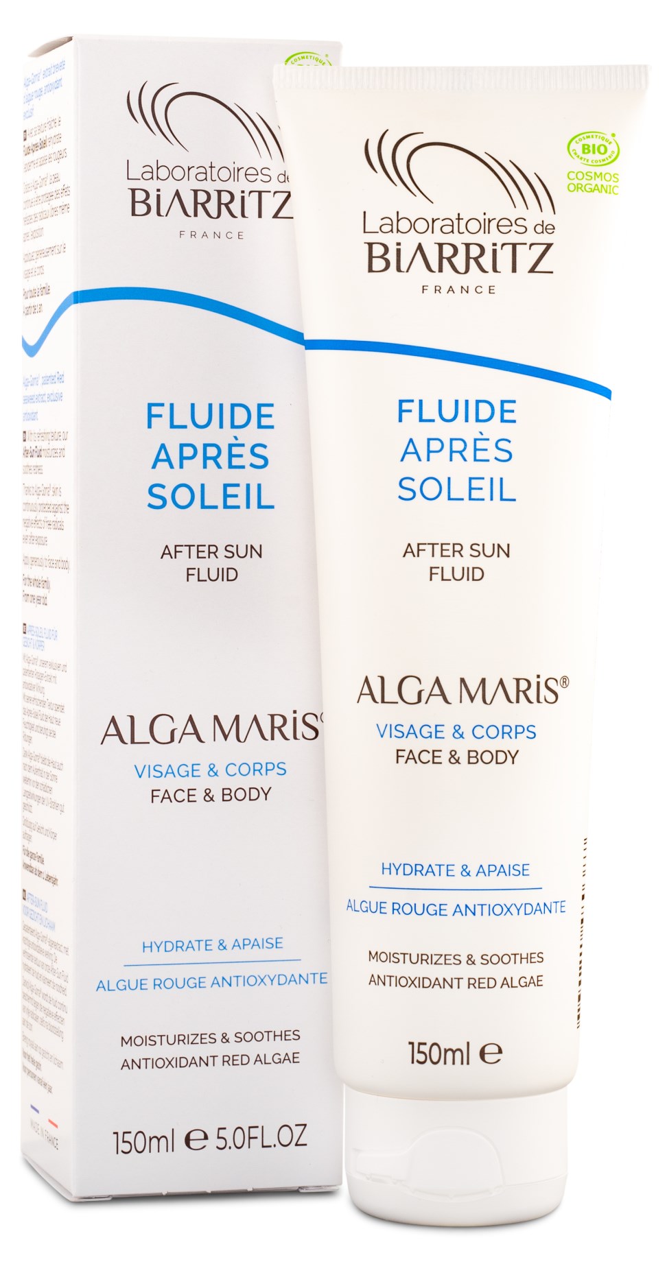 Pas på din hud efter en dag i solen med Alga Maris After-Sun Fluid, en gel der køler, beroliger og fugter huden. Med det patenterede ingrediens Alga-Gorria®, som er et unikt og antioxidant-rigt ekstrakt fra rød havsalg. Dette giver After Sun Fluid muligheden for både at berolige og nære din hud, samtidig med at den beskytter mod nogle af de negative effekter solen kan have, såsom for tidlig ældning. Den lette og friske gel kan bruges både på krop og i ansigtet. Med en dejlig, mild duft af kokos og sheasmør.
