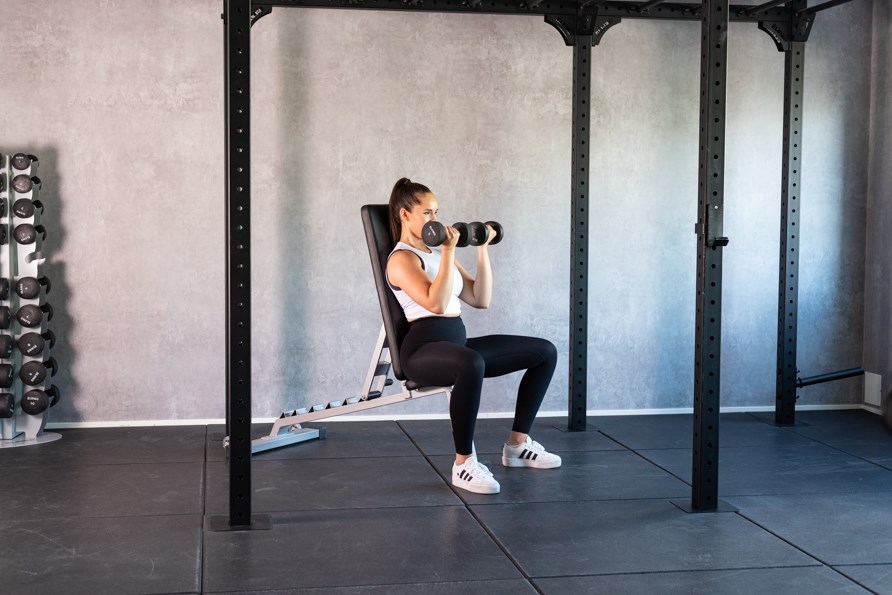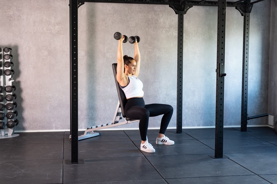 Siddende skulderpres med håndvægte er en enkel skulderøvelse. Læs mere her!