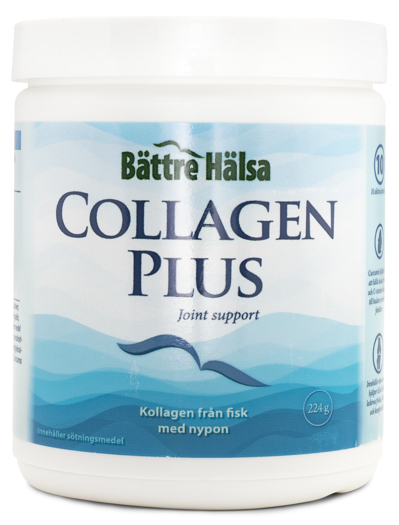Kollagen har tiltrukket sig meget opmærksomhed som et kosttilskud til led, brusk og hud. Dette skyldes, at kollagen findes naturligt i alt bindevæv med en stor mængde i både led, ledbånd og i huden. Bättre Hälsa Collagen Plus er et fint kollagenpulver, beriget med flere udvalgte aktive ingredienser, der giver en god kombination. Disse inkluderer MSM (svovl), hyben, hyaluronsyre og chondroitin - som alle nævnes, når det kommer til kosttilskud for leddene. Kollagenet i Collagen Plus kommer fra fisk fra bæredygtige bestande i Nordamerika.