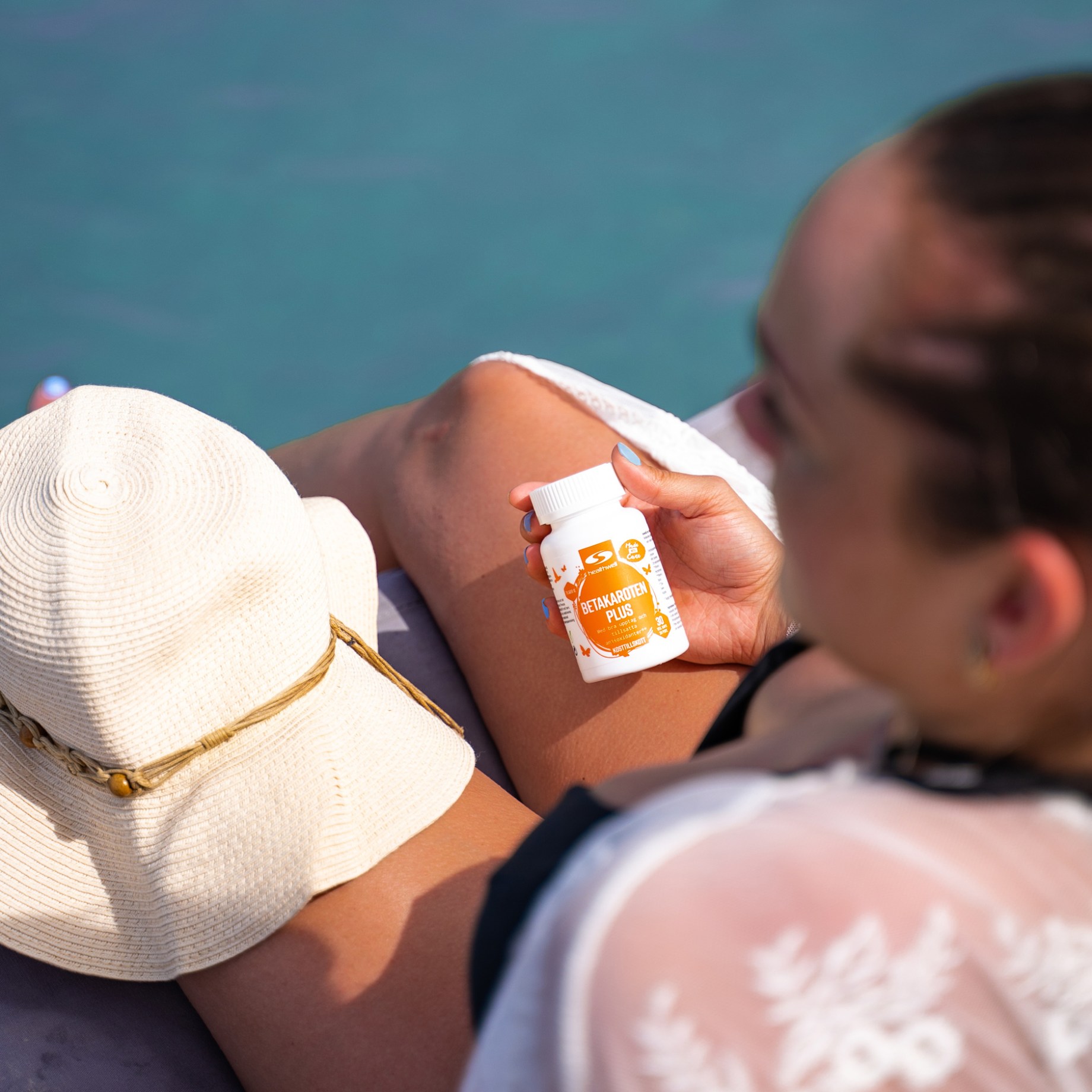 Betakaroten Plus indeholder lycopen, vitaminer og mineraler, inklusive beskyttende antioxidanter som C-vitamin og E-vitamin. Pantotensyre, biotin, zink og selen er også inkluderet. Overdreven eksponering for solen kan accelerere den oxidative proces i kroppen, hvilket fører til for tidlig aldring af cellerne. Ved at indtage flere antioxidanter kan denne proces modvirkes. Betakaroten Plus er små, lette at sluge og vegetabilske kapsler. Anbefalet daglig dosis er én kapsel dagligt sammen med et glas vand.