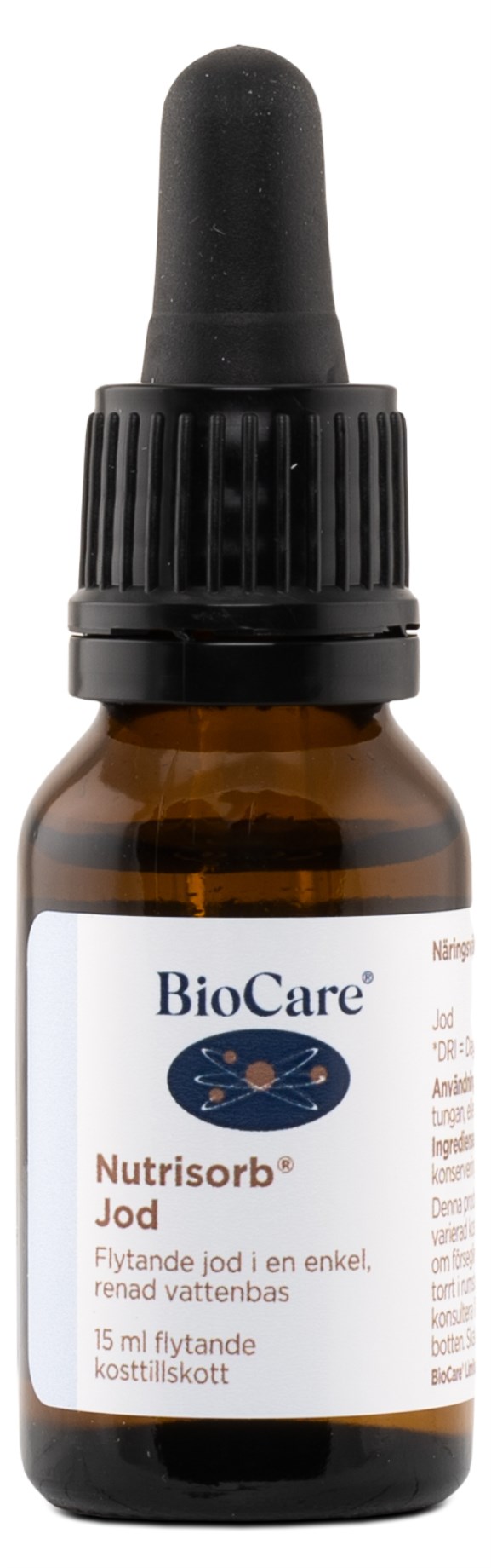 BioCare Nutrisorb Jod er et kosttilskud af høj kvalitet med flydende jod i dråbeform. Tilskuddet indeholder let absorberet kaliumjodid i en hypoallergen renset vandbase. Jod bidrager blandt andet til et normalt fungerende nervesystem, normal kognitiv funktion og normal skjoldbruskkirtelfunktion.