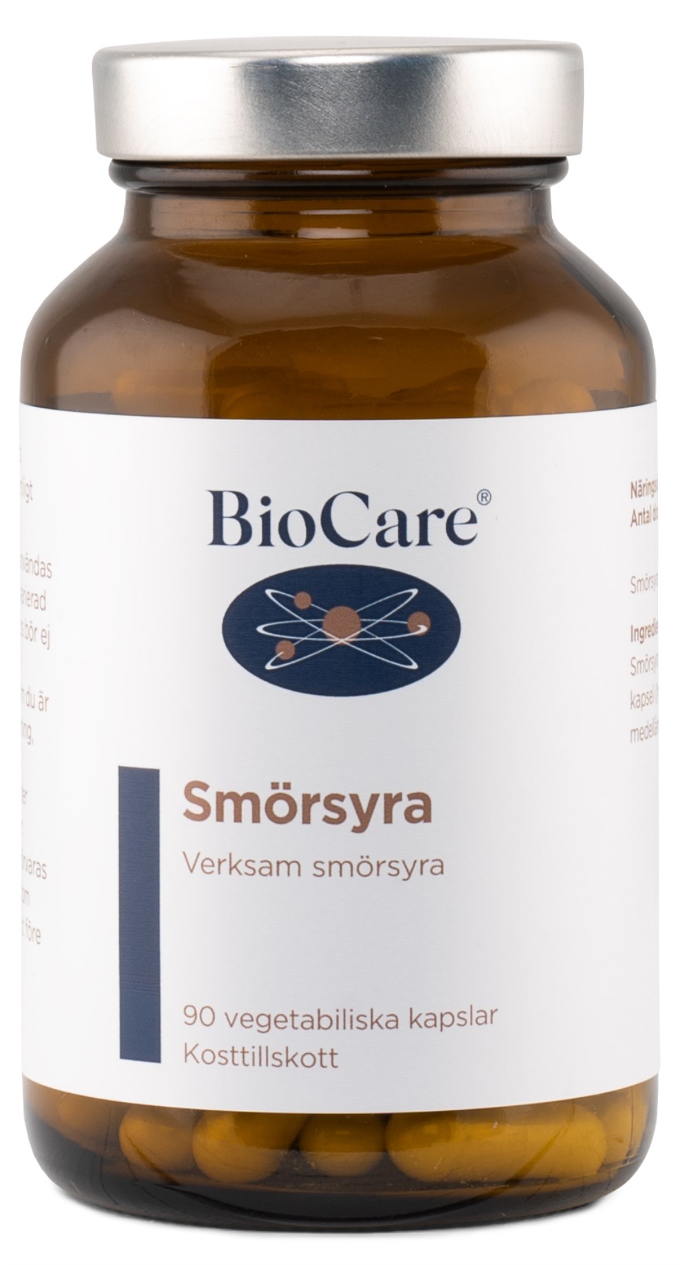BioCare Smørsyre er et dagligt tilskud med fedtsyren smørsyre. Smørsyre er en kortkædet fedtsyre, der produceres, når en bestemt type bakterier i tyktarmen nedbryder kostfibre. At have en høj andel smørsyre i tarmene betragtes som værende positivt, da smørsyre har antiinflammatoriske egenskaber, og desuden også mistænkes for at kunne styrke tarmbarrieren. Med en stærk barriere frigives færre skadelige stoffer gennem tarmslimhinden, hvilket også kan reducere risikoen for en irriteret og betændt tarm. BioCare Smørsyre er derfor rettet mod dig, der lider af forskellige mave- og tarmproblemer, såsom oppustethed, IBS og vanskeligheder med at nedbryde eksempelvis fiberrige fødevarer.
