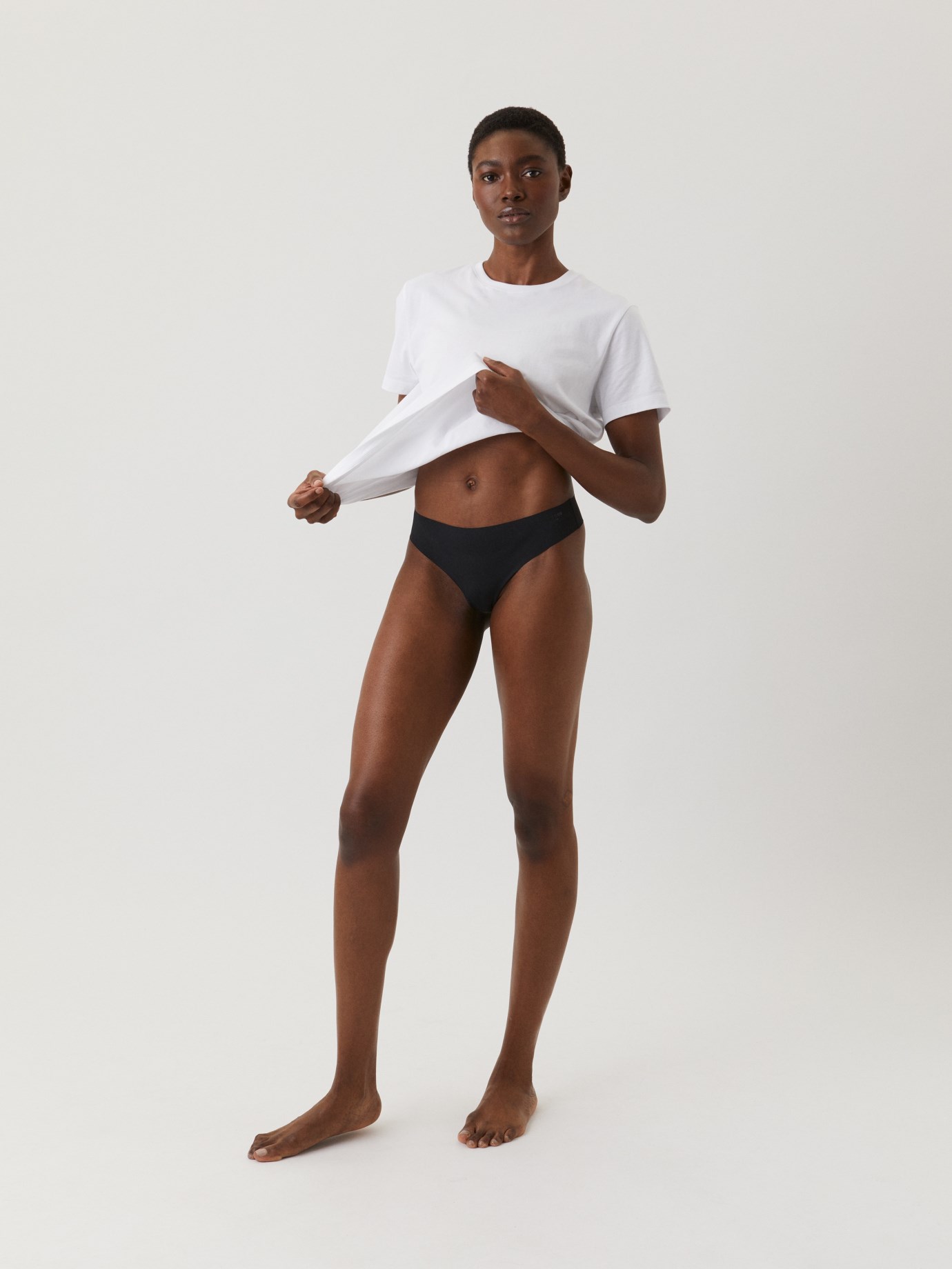 Björn Borg Performance Thong 2-pak er trusser, der ikke kan ses under dit tøj, takket være de laserskårne kanter og det tynde materiale. Flot pasform, middelhøj talje og minimal dækning bagpå. Trusserne er hurtigtørrende og fremstillet i strækbart mikrofiberjersey, et materiale der ånder godt. Perfekt under jeans eller træningstights, når du ikke vil have, at trussekanterne skal kunne ses gennem bukserne.