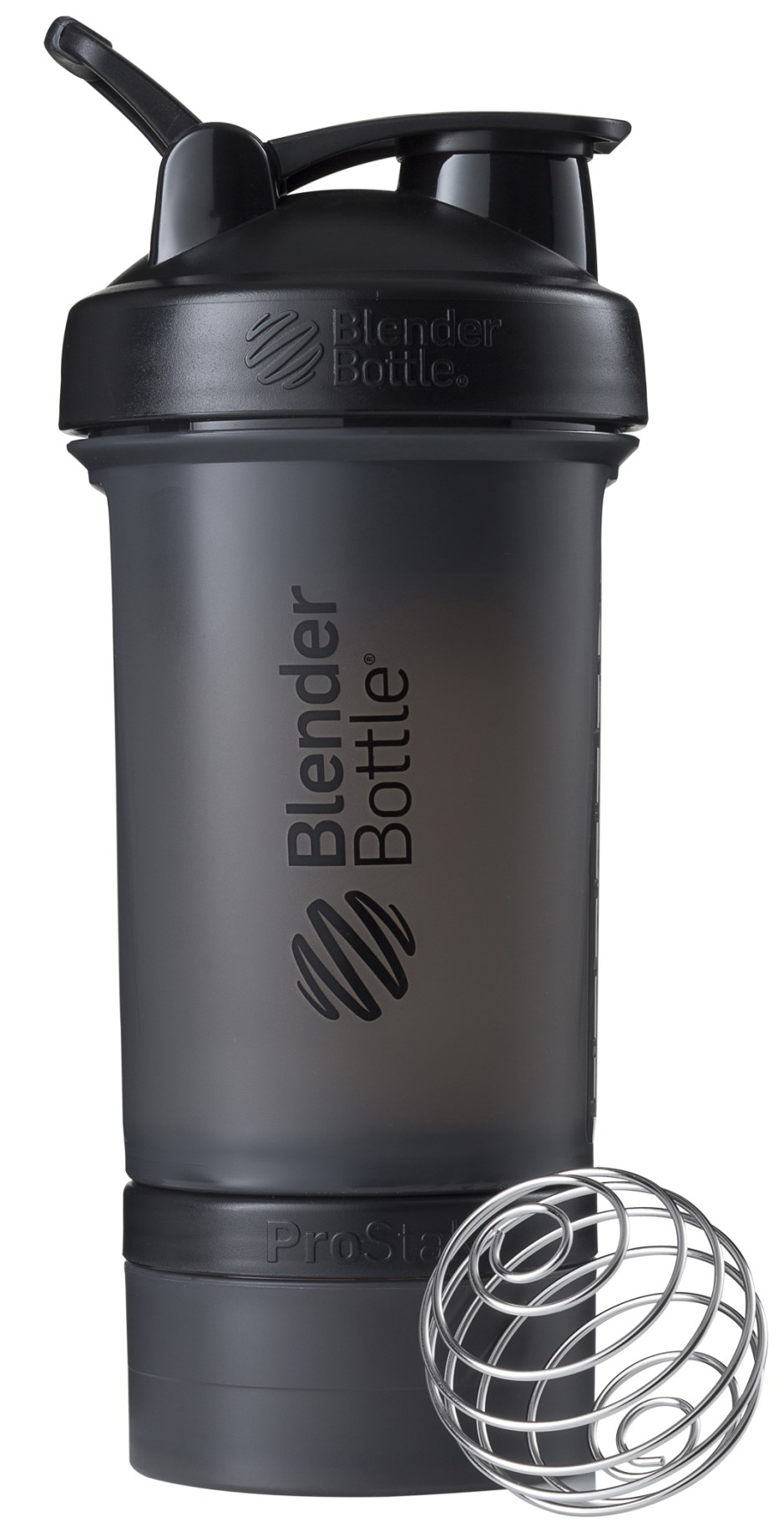 Blender Bottle Prostak er en stilfuld shaker med ekstra beholdere, som du nemt kan skrue af og på. En nem måde at transportere proteinpulver og kosttilskud med sig, i den samme beholder. Shakeren giver dig gode og lette shakes takket være sin blandingskugle, BlenderBall Wire Whisk, i patenteret stål, der modvirker klumpdannelse. Flasken har også et ergonomisk design og er lækker ikke med et låg, der holder tæt. Flasken tåler maskinvask.