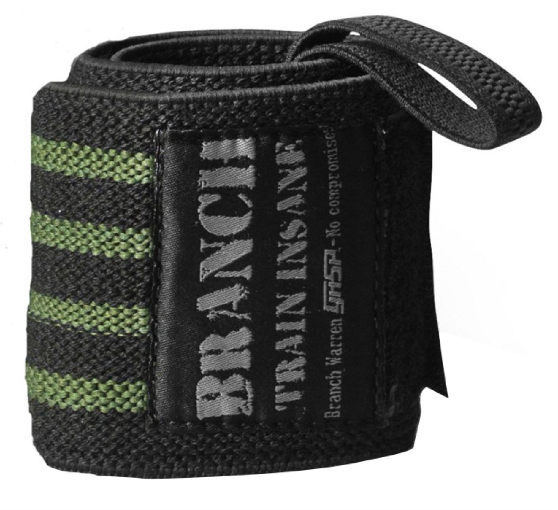 Very strong elasticity, 18" long, developed to "Train insane" with maximum support! Adjustable sizing with Velcro, 4 army green elastic lines for heavy duty weightlifting, extra strong thumb loop. Branch Warren wrist wraps is a high quality product from GASP Inc.
