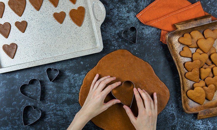 Del dejen i 2-3 dele, så den er nemmere at arbejde med samt rulle ud. Rul en del ud mellem to stykker bagepapir til den ønskede tykkelse. Fjern det øverste bagepapir og lav dine brunkager i den ønskede form.
