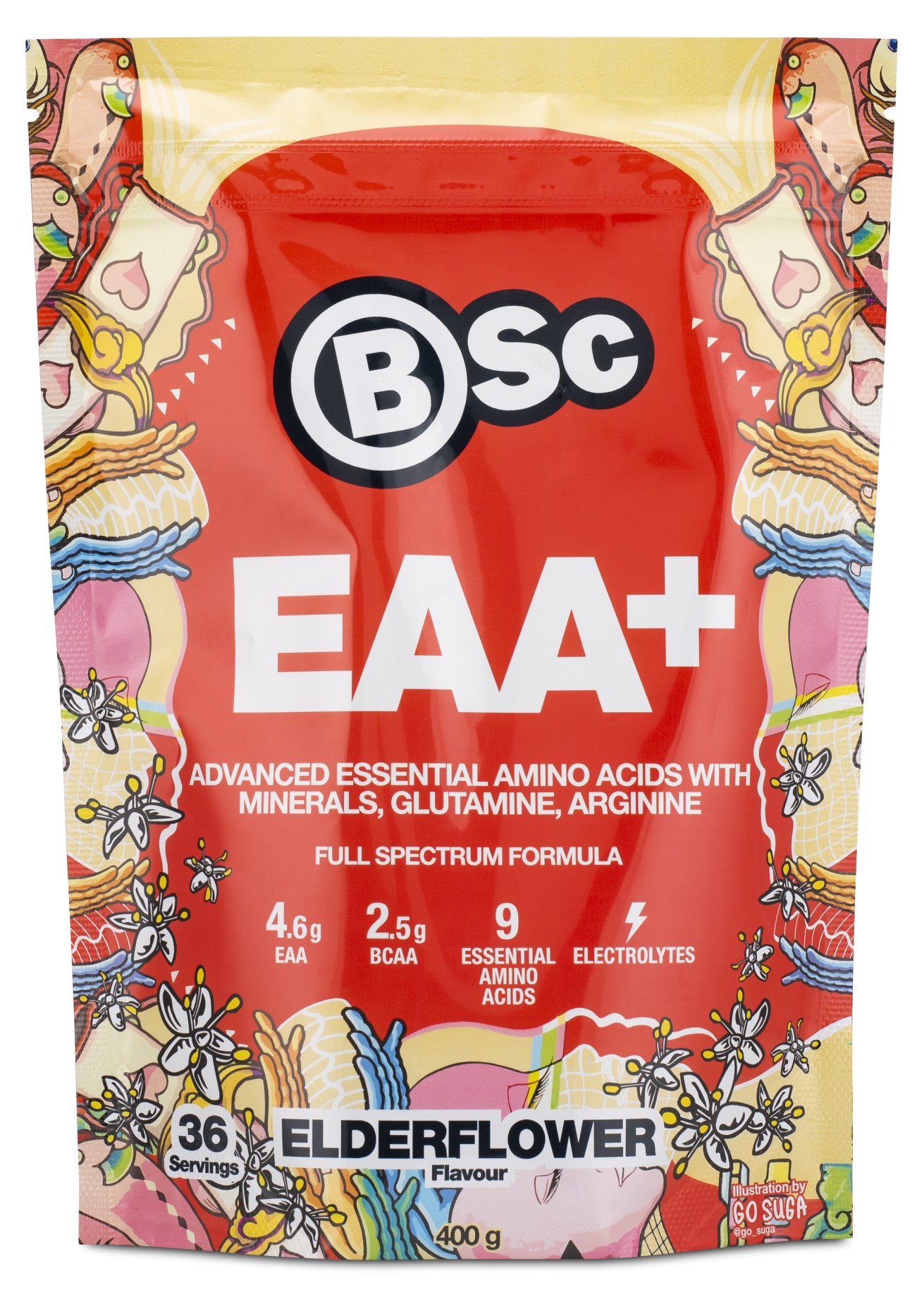 BSc EAA er et kosttilskud med hele 6.600 mg frie aminosyrer – perfekt til ekstra svedig træning! De essentielle aminosyrer er blevet suppleret med en unik væskeformel, der inkluderer kokosvand, salte og vigtige elektrolytter som for eksempel magnesium – fremragende til at hjælpe kroppens væskebalance under træningen!