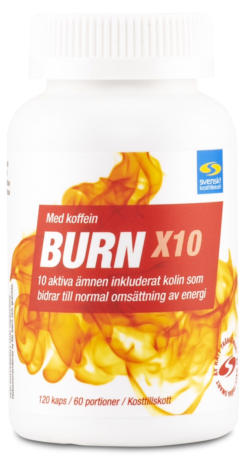 Et af markedets mest solgte kosttilskud til brug i perioder, hvor du ønsker at forbrænde fedt. BURN X10 indeholder 10 aktive stoffer, herunder choline, som bidrager til normal energiomsætning og giver dig de resultater, du leder efter. Indholdet består af en specialtilpasset formel, som gør det lettere for dig atforbedre din præstation, gå på diæt eller sikre, at din forbrænding ikke begrænses. BURN X10 bidrager til normal fedtmetabolisme og bruges med fordel sammen med sund kost og træning. Vælg mellem kapsler med eller uden koffein.