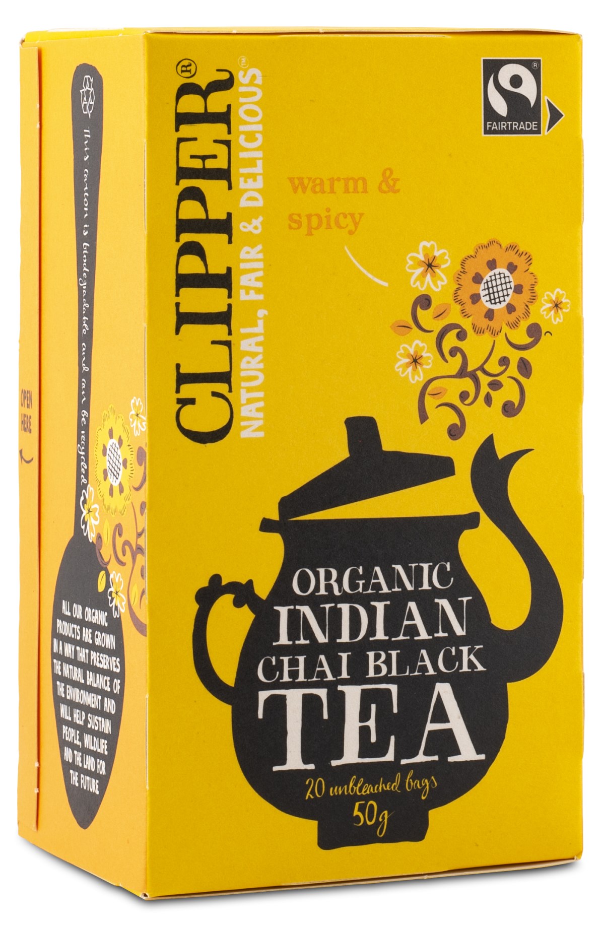 Clipper Tea Indian Chai er en sort te, fuld af smag. Nyd en kop varm te ved morgenmaden eller midt på dagen, når du vil trænger til et opløft. Clipper Tea Indian Chai får sin søde, syrlige smag fra appelsinskal og den lidt mere krydrede smag fra kanel, nelliker og fennikelfrø. Teen er også økologisk og Fairtrade-mærket, så du kan drikke med god samvittighed.
