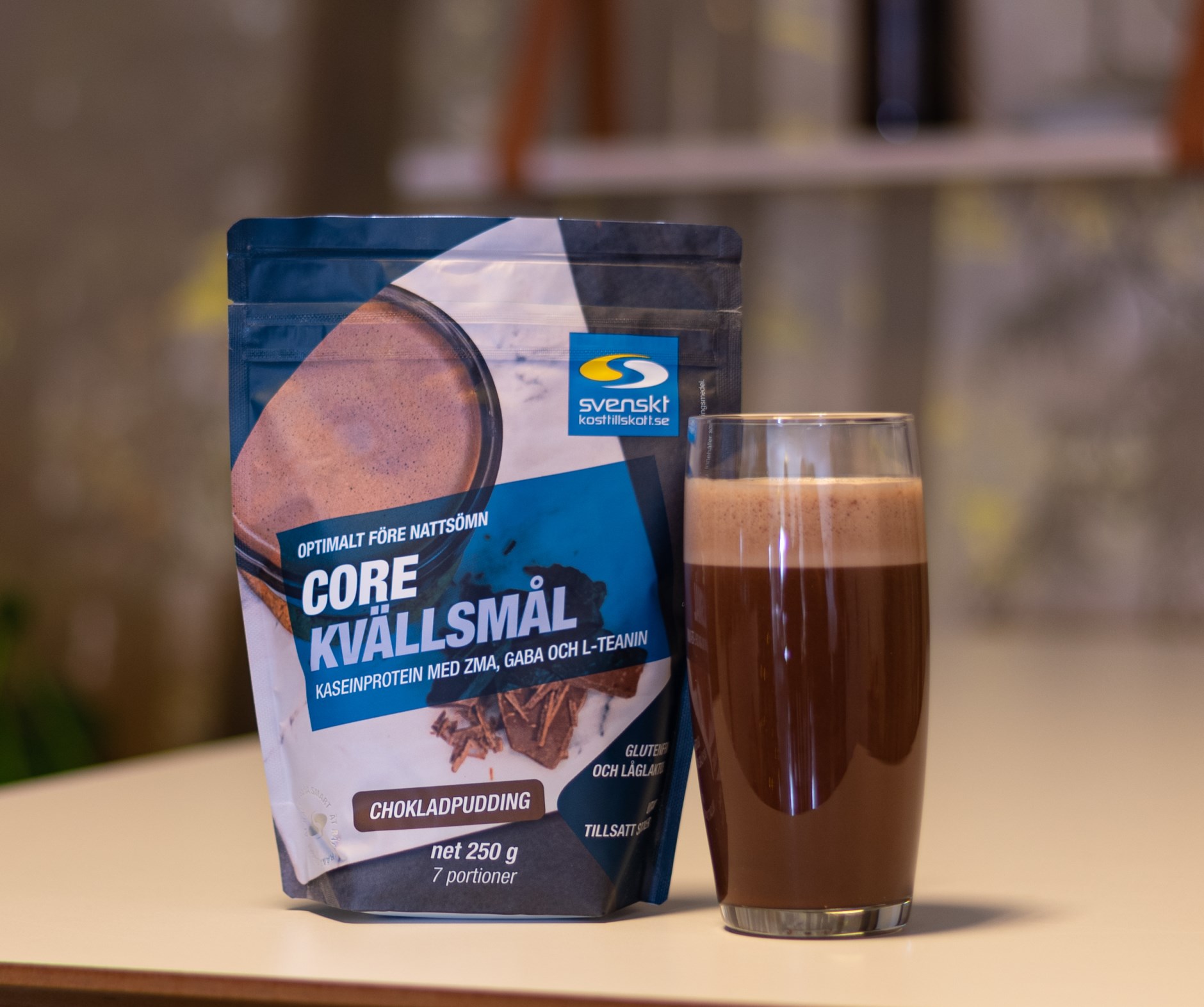 Core Aftenmåltid er baseret på kasein, et mælkeprotein, der langsomt absorberes af kroppen og forsyner musklerne med protein hele natten, og som modvirker den naturlige nedbrydningsproces af muskelmasse. En servering indeholder ca. 20 gram protein, der er afbalanceret med langsomme kulhydrater fra havre. Core Aftenmåltid indeholder ikke gluten og er lav laktose med mindre end 0,1 gram laktose pr. 100 gram.
