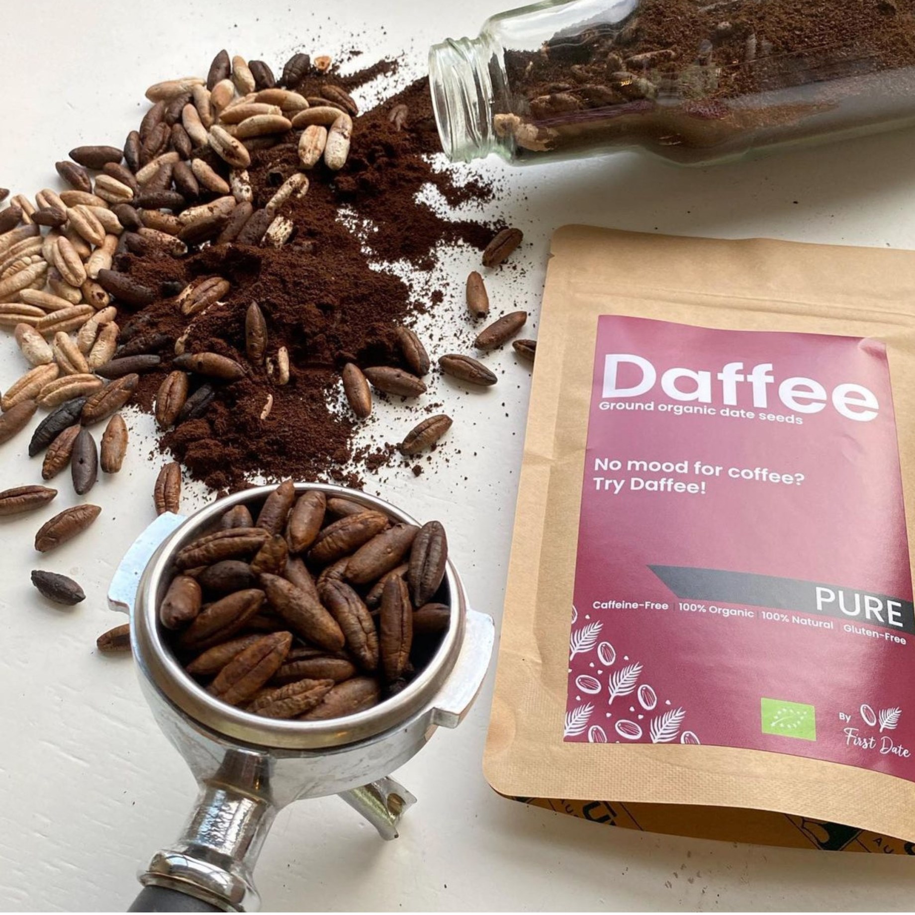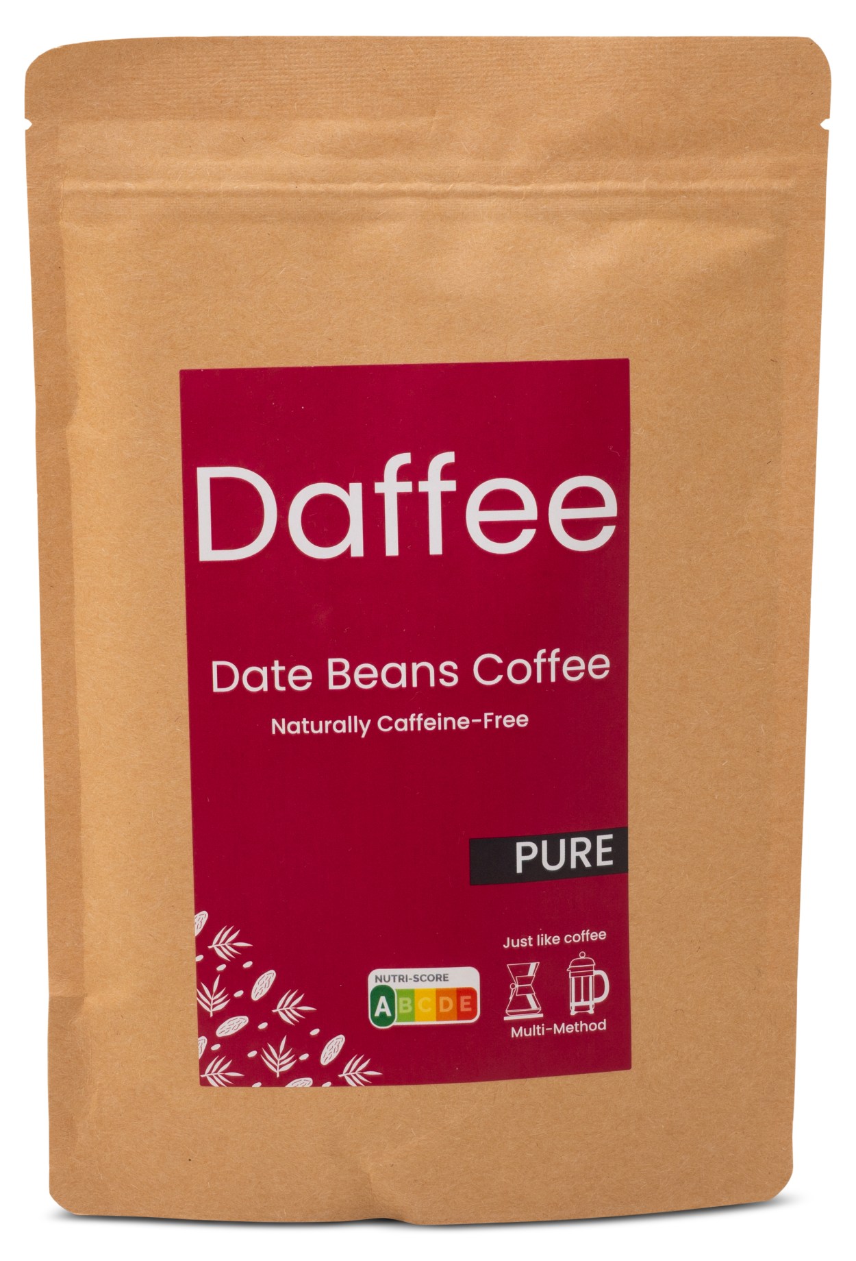 Daffee Koffeinfrit Daddelkaffe revolutionerer din morgenkaffe med aromatisk kaffe lavet på ristede og malede økologiske daddelkerner. Kaffen er fri for koffein, farvestoffer, gluten og konserveringsmidler, og brygges som en helt almindelig kaffe. Det er naturligt rig på fibre, jern, mineraler og antioxidanter. Daddelkaffen fås desuden i flere lækre smagsvarianter, såsom kardemomme, kanel og appelsinskal. Opdag din nye favoritkaffe og start dagen på den rigtige måde!