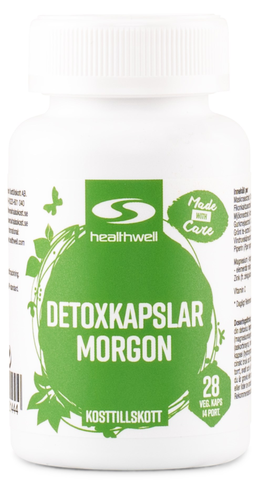 Detoxkapsler Morgen fra Healthwell er et kosttilskud med en gennemtænkt og kompleks urteblanding med f.eks. Mælkebøtte, melon (Uva ursi) og gurkemeje, som du tager i forbindelse med en detoxbehandling. Kapslerne er beriget med zink, C-vitamin og magnesium, som bidrager til en række forskellige kropsfunktioner samt sort peberpiperin for bedre absorption af tilskuddet. Med Healthwell Detoxkapsler Morgen giver du din krop gode betingelser for en vellykket detox, hvor du vil rydde slagprodukter og væsker og samtidig tilføje næringsstoffer, vitaminer og mineraler.