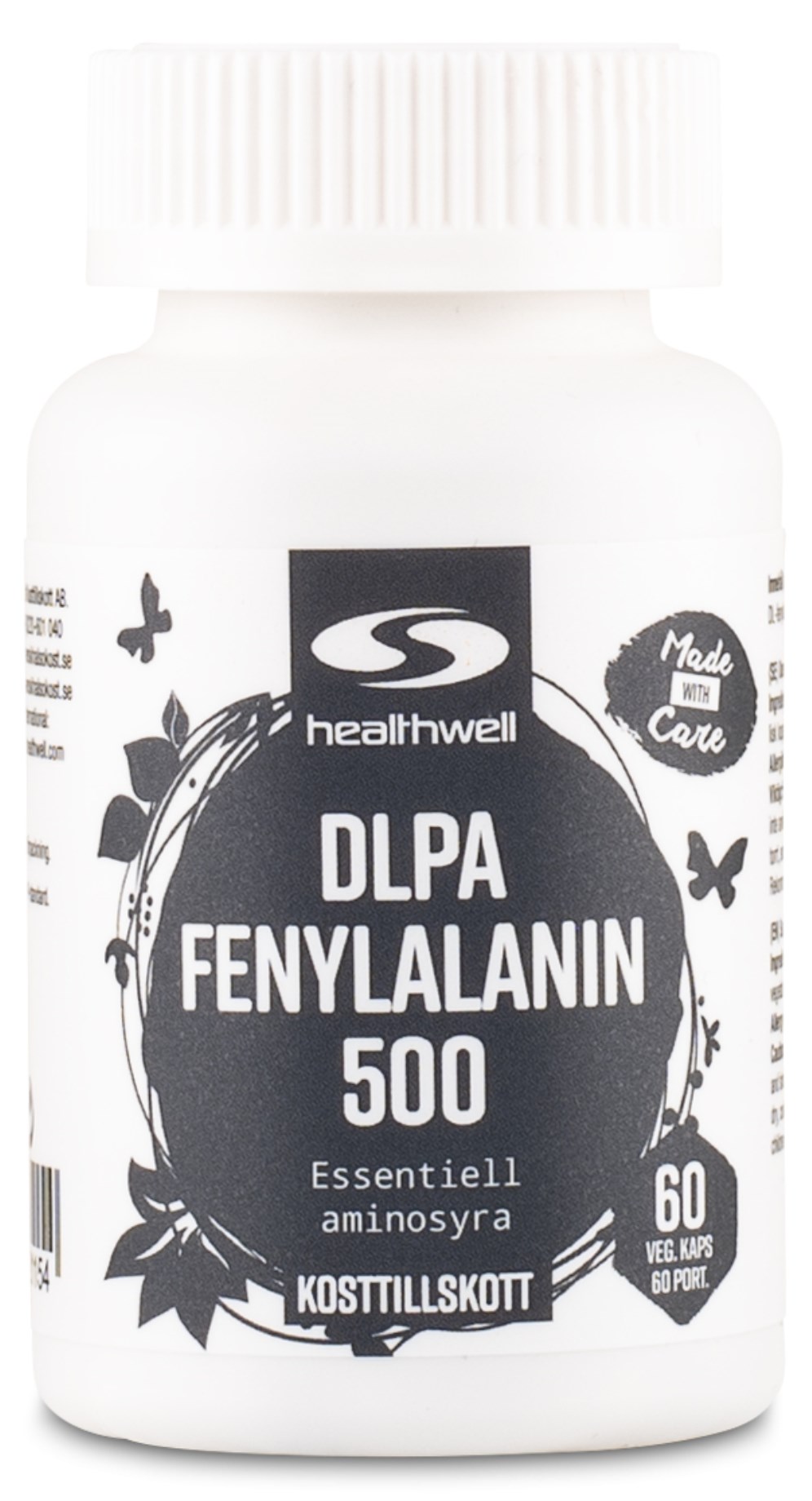 DLPA Phenylalanine 500 fra Healthwell indeholder aminosyren DL-phenylalanin med 500 mg pr. kapsel. Phenylalanin er en af de essentielle aminosyrer, som kroppen ikke selv kan producere, men som skal tilføres gennem kosten. I kroppen fungerer DL-phenylalanin som en komponent af proteinet, der opbygger muskelmasse. Det er også med til at producere aminosyren tyrosin, som igen er involveret i produktionen af dopamin og adrenalin. DLPA Phenylalanine 500 kommer i vegetabilske og letvalgte kapsler. Anbefalet indtag er 1 kapsel om dagen som supplement til kosten.