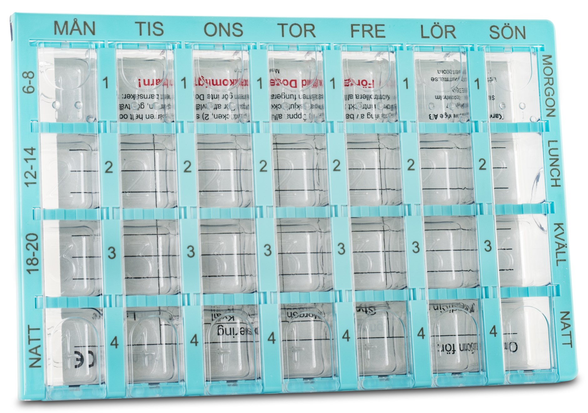 Enkel doseringshjælpemiddel. - Til medicin og kosttilskud - Rækker til en uges forbrug - Brugsanvisning medfølger