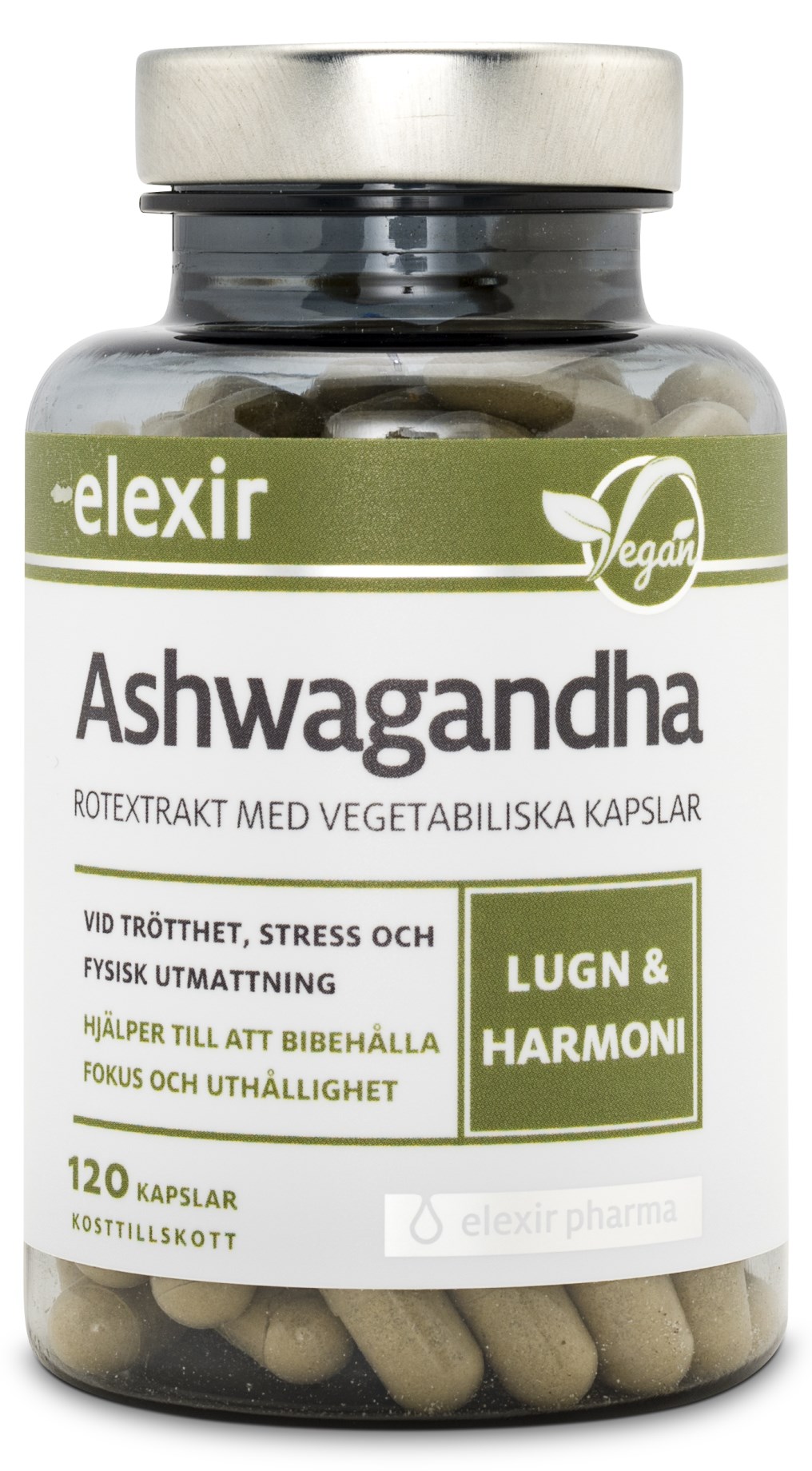 Elexir Ashwagandha er et kosttilskud fra Elexir Pharma, der indeholder den kraftfulde urt, ashwagandha, og B5-vitamin. Ashwagandha er en adaptogen urt, hvilket betyder, at den indeholder stoffer, der bidrager til kroppens evne til at tilpasse sig efter eksempelvis stress. Derfor er dette kosttilskud fra Elexir Pharma et godt supplement, hvis du lider af midlertidig træthed og stress.