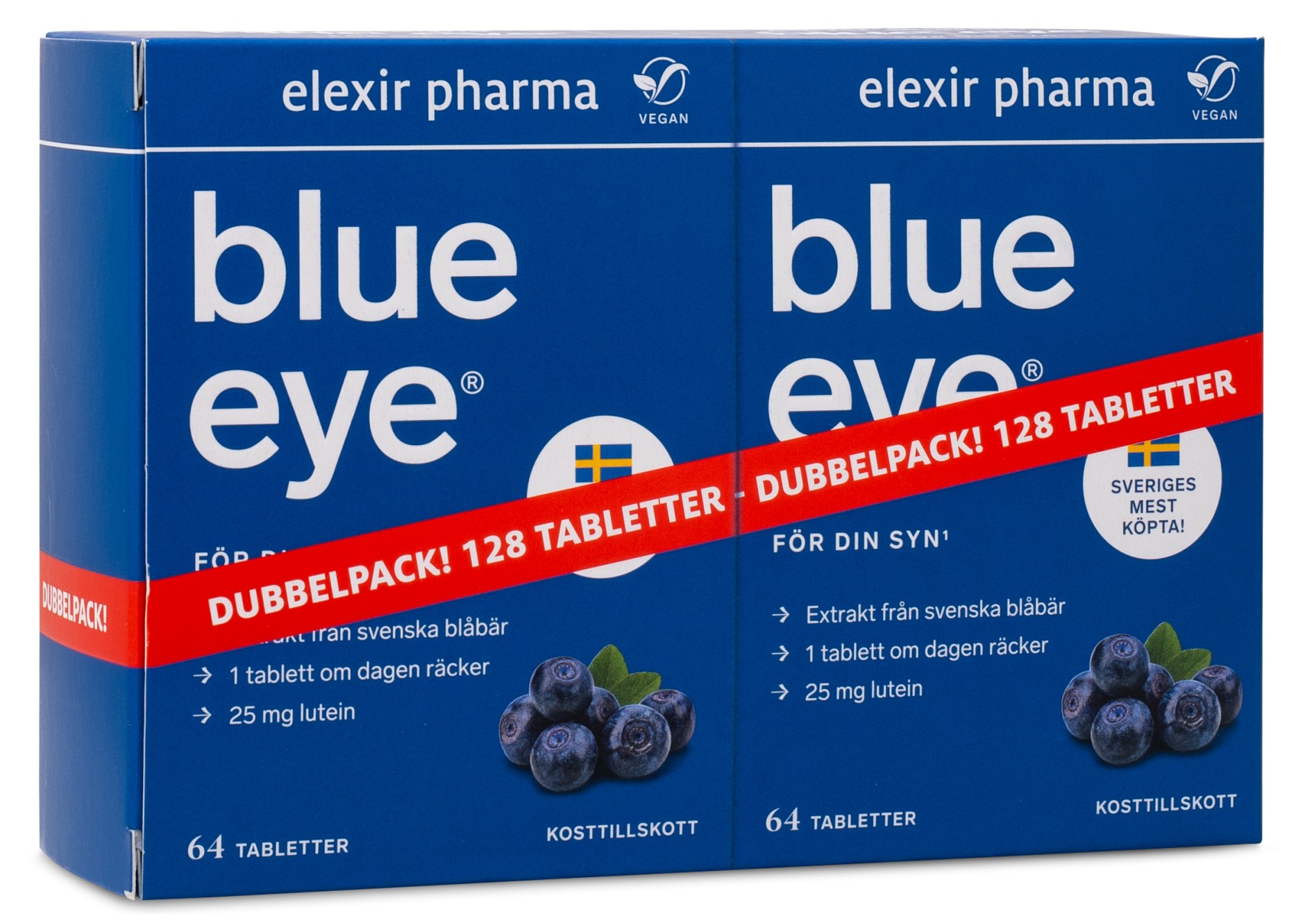 Blue Eye er tabletter med blåbærekstrakt. Blåbær er naturligt rig på et stof kaldet lutein. Lutein findes blandt andet i nethinden i øjet, men øjet kan ikke selv danne lutein, så det skal tilføjes via kosten kontinuerligt. Lutein fra morgenfrue tilsættes også til produktet for at tilføje ekstra lutein i tabletten. Blue Eye kan anvendes som et dagligt supplement til alle, som ønsker at sikre deres indtagelse af disse næringsstoffer, ikke mindst blandt mennesker over 50 år. Anbefalet dosis er en tablet dagligt.