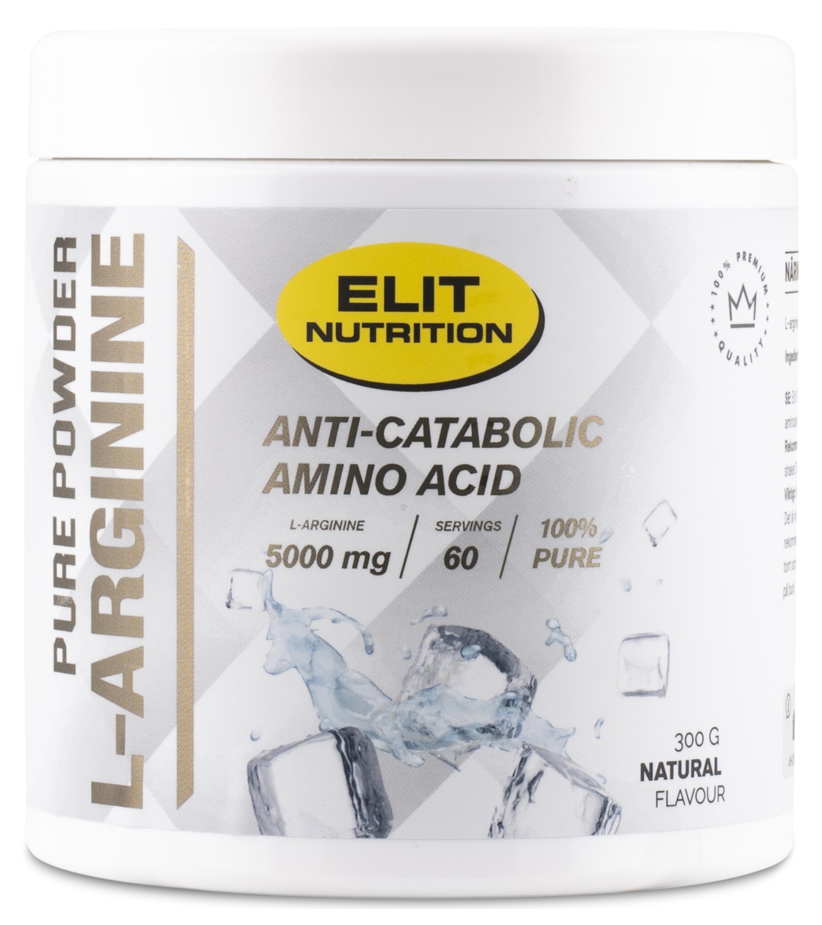 100 % Pure Powder L-arginine fra ELIT er et kosttilskud med aminosyren L-arginin i sin reneste form, fri for fyldstoffer. Da Pure Powder L-arginine kun indeholder rent arginin, kan det bruges som en koffeinfri PWO før aftenens træning, sammen med andre produkter, eller præcis som det er.