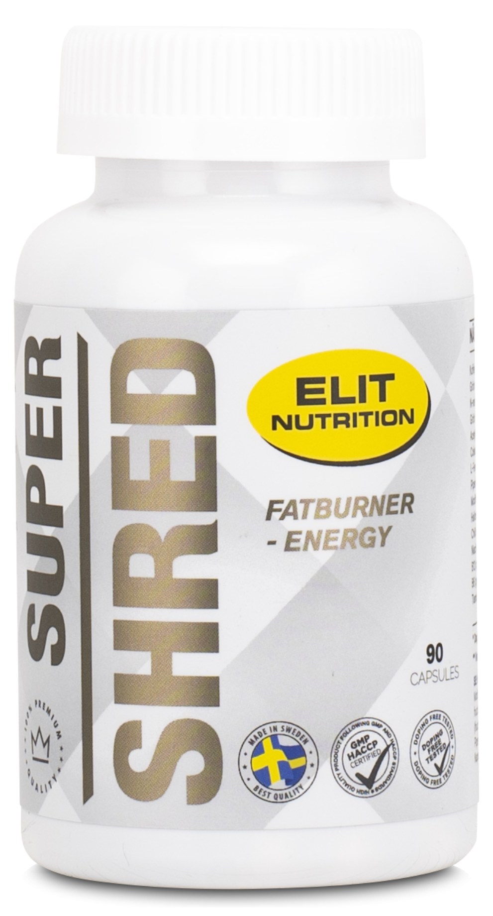 ELIT Super Shred er et kosttilskud, der er udviklet til brug under diæt. Fuld af kraft med 15 aktive ingredienser, hvor hver daglige dosis indeholder 300 mg koffein, der bidrager til øget opmærksomhed, bedre koncentration og øget udholdenhed. Indeholder populære ingredienser som N-methyltyramin, Coleus forskohlii, grøn kaffeekstrakt og hindbærketoner og er beriget med B-vitaminer for at give et så komplet produkt som muligt. Tag en kapsel to gange om dagen for vedvarende effekt.