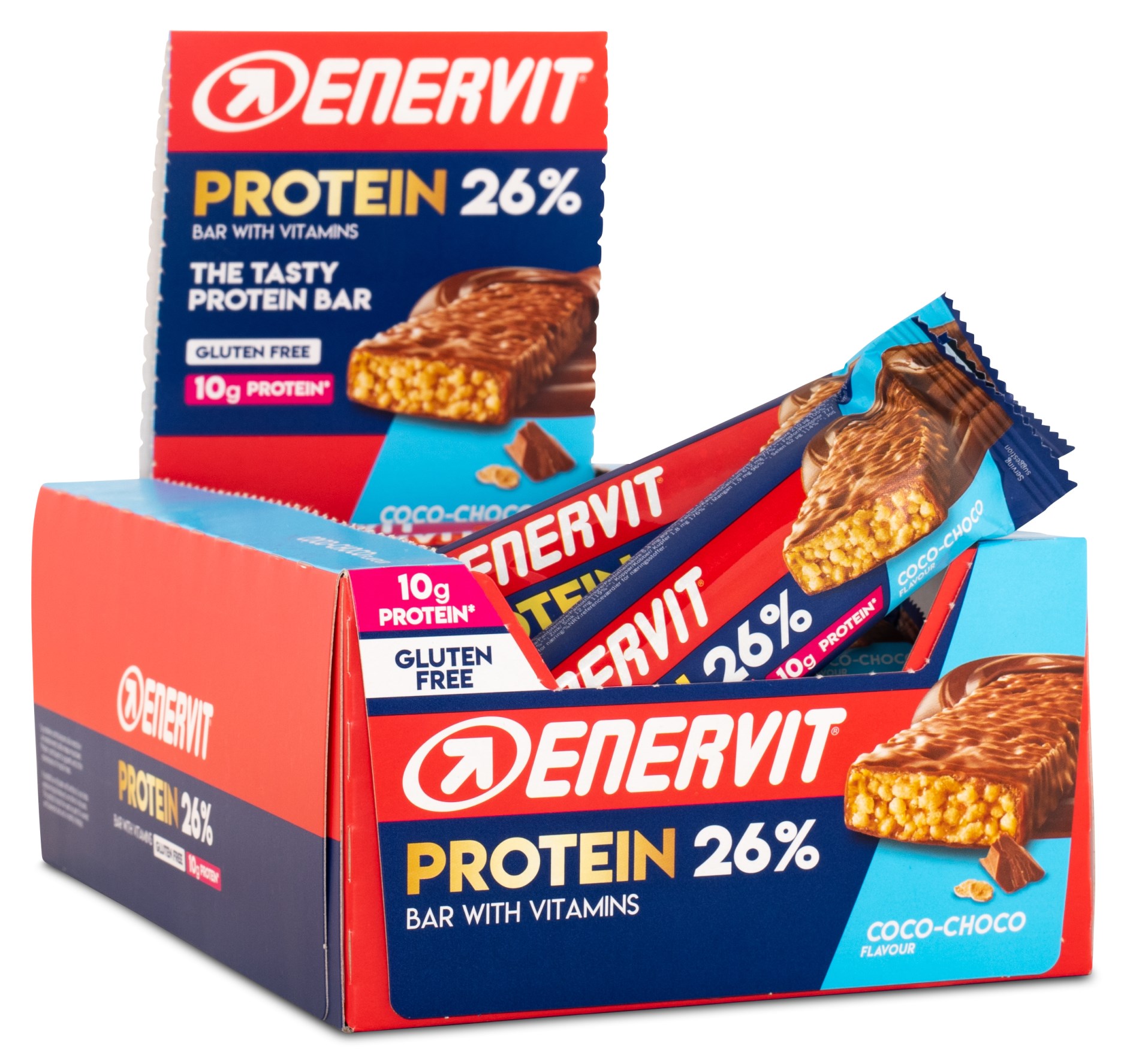 Beløn dine muskler efter træning eller i løbet af dagen med Enervit Sport Protein Bar. Med en høj mængde protein fra både mælk og soja giver Enervit Sport Protein Bar dine muskler de næringsstoffer, de skal bruge for at restituere. Fås i to velsmagende smagsvarianter, mørk chokolade, citron og kokos chokolade.