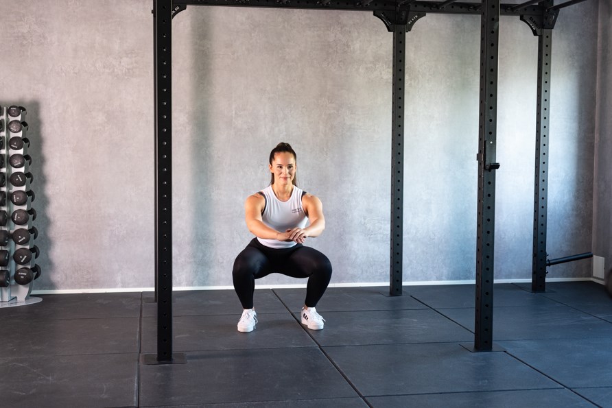 2. Lige overkrop med neutral squat og let spænding i torso.