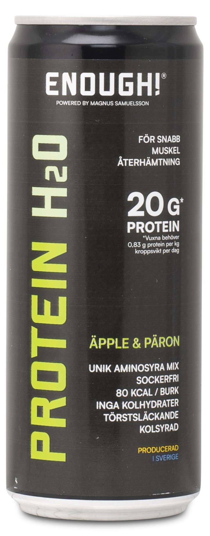 Magnus Samuelssons Proteinvand fra Enough er et kaloriefattigt produkt, der indeholder hele 20 gram protein. Med de essentielle aminosyrer leucin, valin, isoleucin, threonin, lysin, fenylalanin, methionin og histidin. Essentielle aminosyrer er de aminosyrer, som kroppen ikke selv kan producere. Udover disse indeholder det også glutamin, glycin, taurin, citrullin og alanin. Proteinvandet er perfekt at drikke for personer, der ønsker at forbrænde fedt eller for dem, der fokuserer på muskelopbygning. Fremstillet af svenske ingredienser.