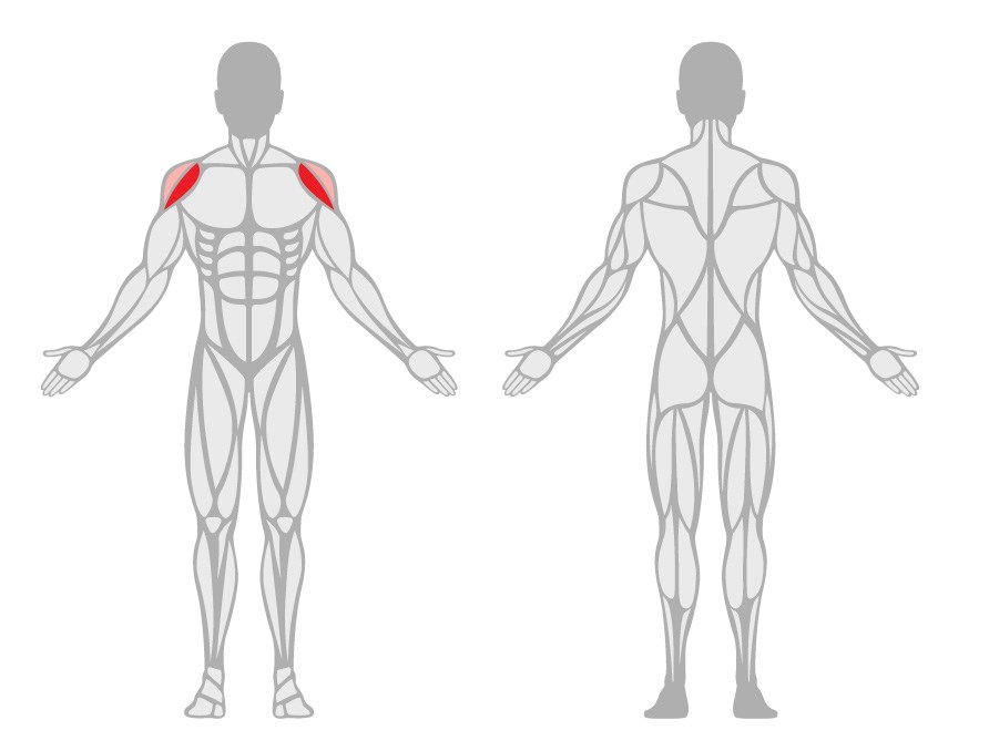 Hvis du ønsker at træne forsiden af skuldrene, er frontløft med håndvægte et sikkert valg. Denne øvelse kan også varieres og udføres med en vægtskive eller i en kabelmaskine. Prøv dig frem til det, der føles bedst.