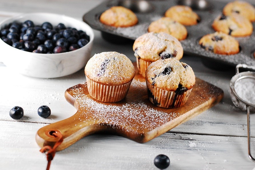 Lækre, glutenfri blåbærmuffins, der kan nydes med det samme eller fryses ned til senere.