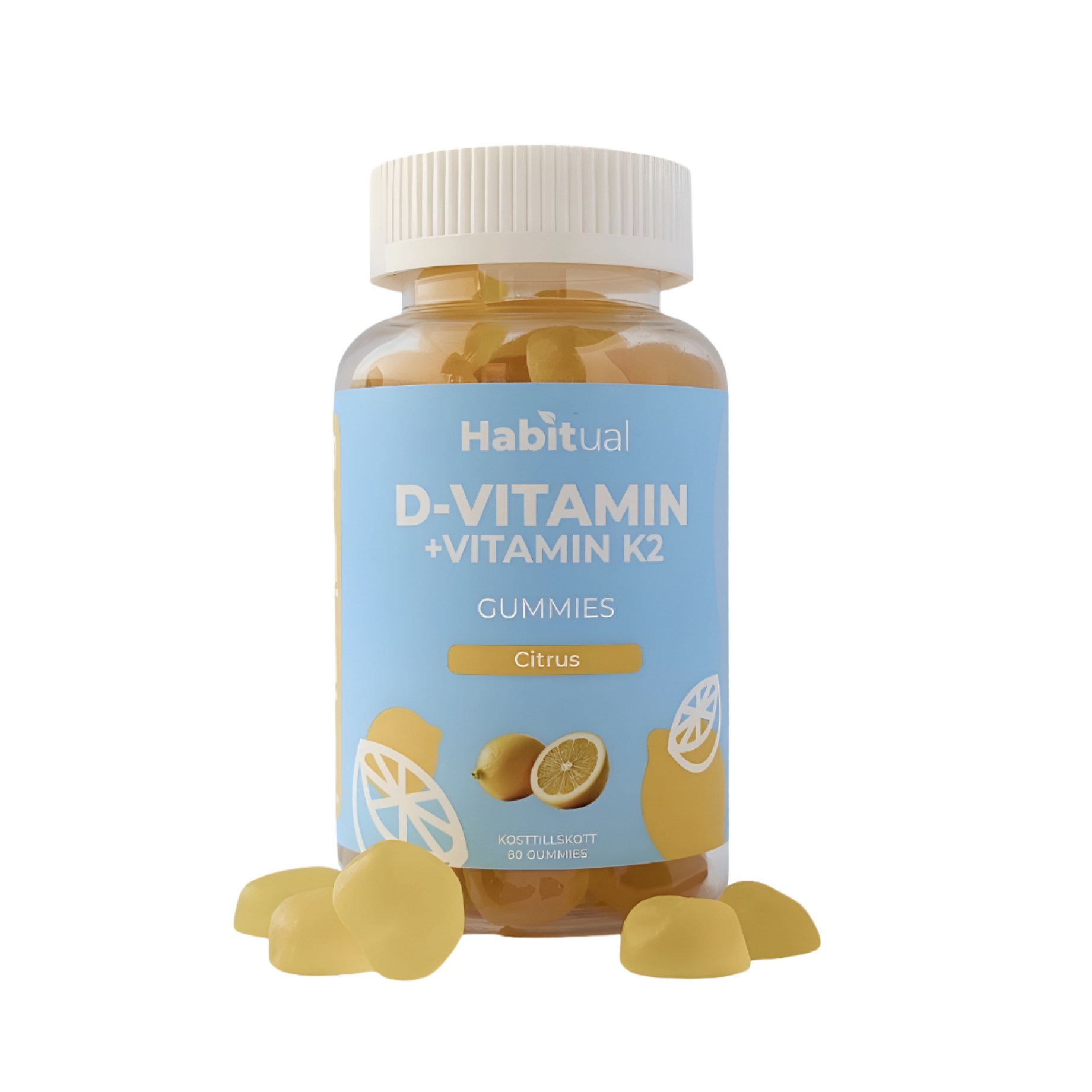 Habitual D-vitamin Gummies gør det både nemt og velsmagende at få dækket dit vitaminbehov. D-vitamin anbefales især i vinterhalvåret og kombineres her med vitamin K2, som er involveret i blodets størkning. Sammen med D-vitamin og calcium virker vitamin K2 for at fremme en normal knoglesundhed. Habitual D-vitamin Gummies er velsmagende vingummier med citrussmag, som let bliver en del af din daglige rutine.