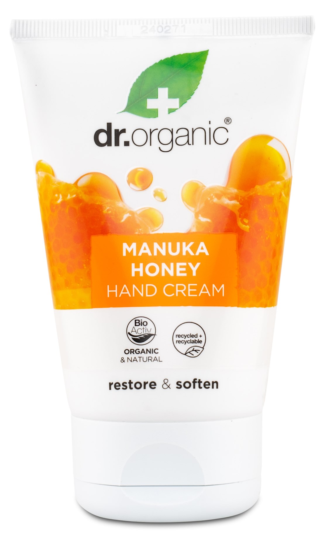 Manuka Honey Hand & Nail Cream fra Dr Organic fugter dybt sprukne hænder og tørre neglebånd. Dr Organic Hand & Nail Cream med manuka honning indeholder ud over den plejende manuka honning også økologisk aloe vera, solsikke og olivenolie samt vitamin E, for at give dig en intens og dyb fugt af tørre hænder. Dr Organic Manuka Honey Hand & Nail Cream indeholder ingredienser, der fremmer hudens elasticitet og giver dine hænder en blød og fugtgivende følelse, der varer.