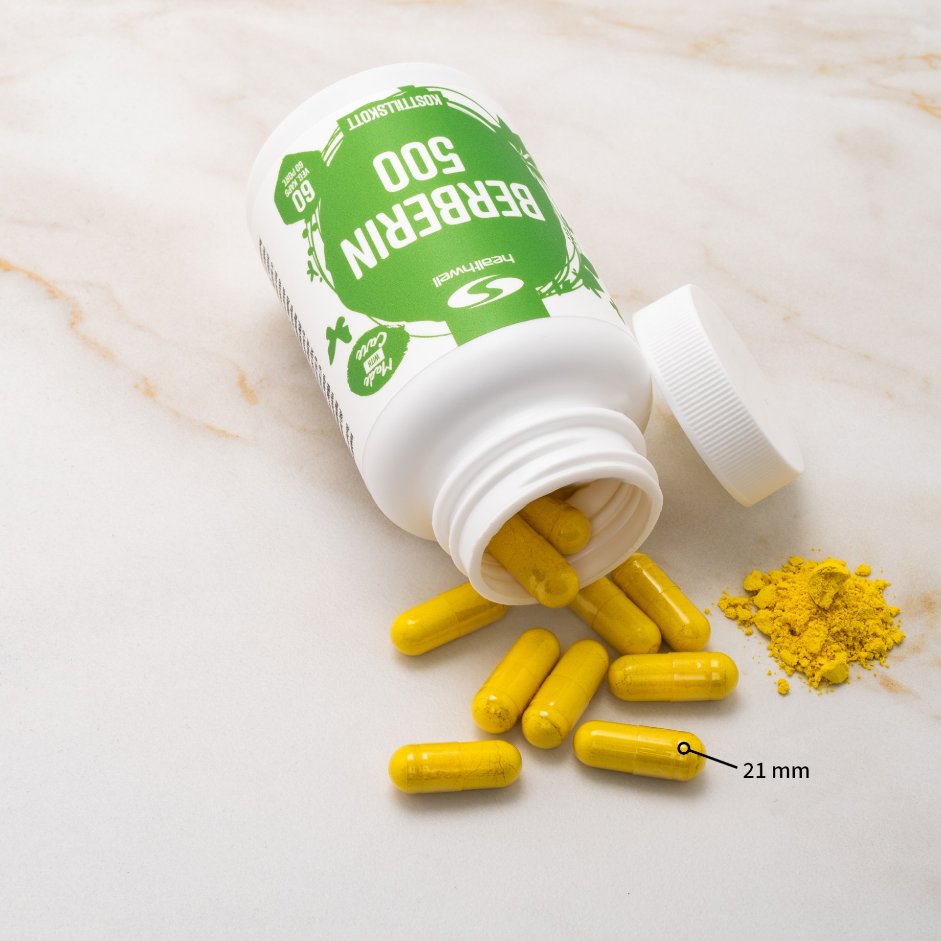 Berberin, også kendt som berberine, er en alkaloid, der findes i rødderne af berberisplanter. Alkaloider er stoffer, der stammer fra planter eller svampe og kan have betydningsfulde effekter på kroppen, både fysisk og psykisk. Healthwell Berberin 500 indeholder et naturligt ekstrakt fra Berberis aristata i hydrochloridform. Dette betyder, at berberinet er i en saltsammensætning med kloridioner for at forbedre dets stabilitet og kroppens optagelse. Det er således en form for berberin, der er opløselig i vand og dermed lettere optagelig.