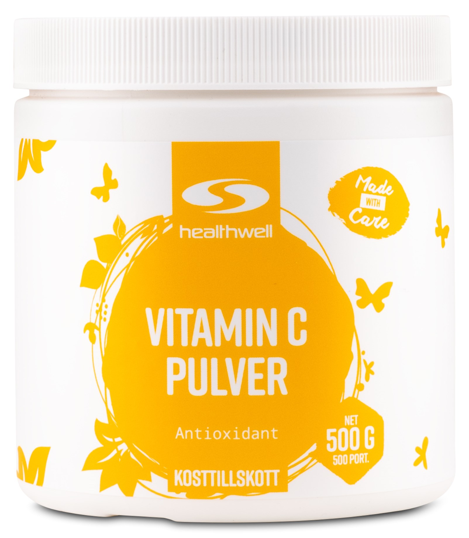 Vitamin C Pulver fra Healthwell består af 100 % l-ascorbinsyre, der er en ren form af vitamin C. Vitamin C har flere betydningsfulde funktioner i kroppen, bl.a. bidrager det til immunsystemet og nervesystemets normale funktion. C-vitamin fungerer også som antioxidant, der beskytter cellerne mod oxidativ stress.