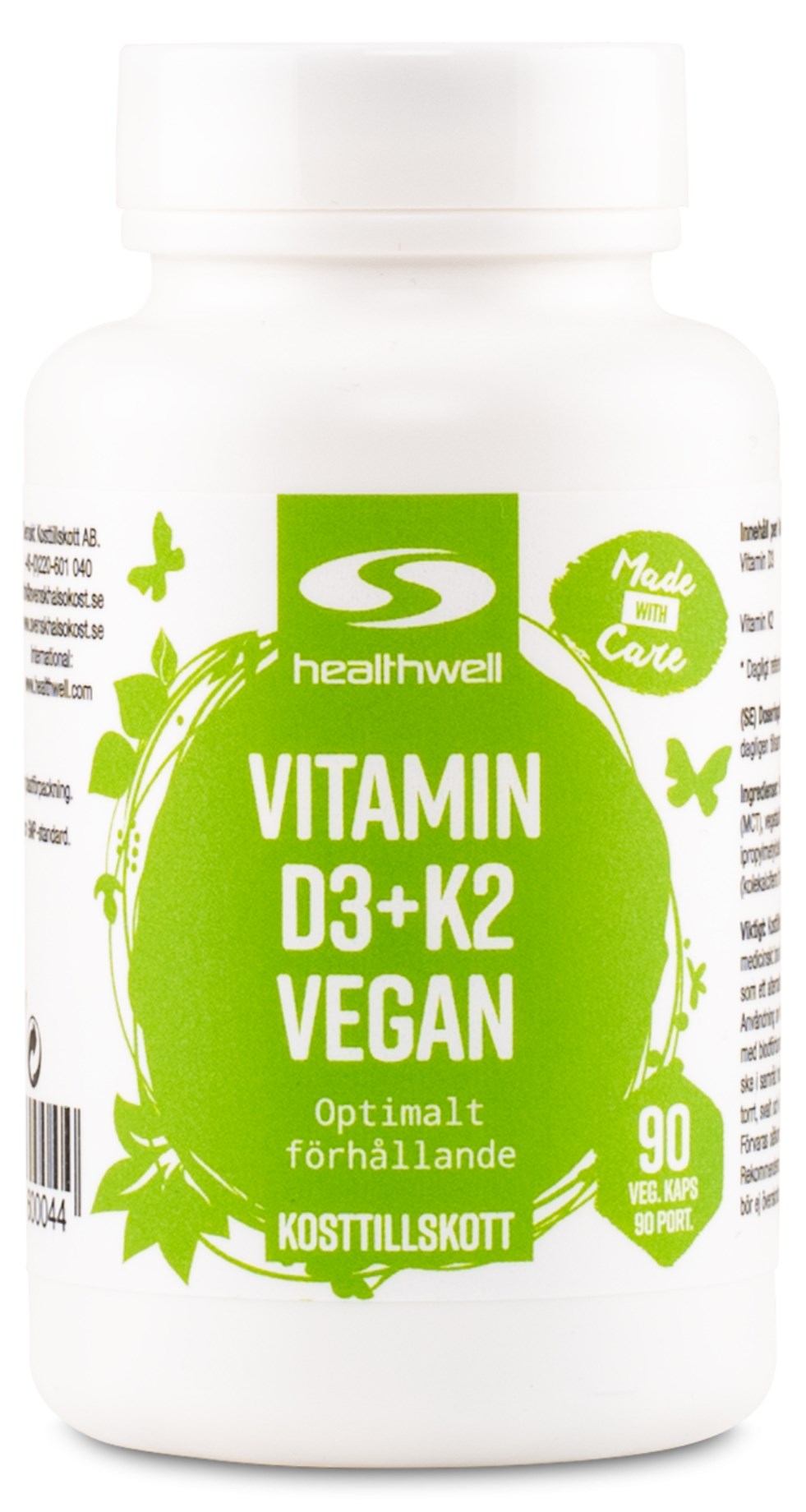 K-et i K-vitamin står for koagulation, da K-vitamin bidrager til blodets evne til at størkne. K-vitamin er også vigtigt for en normal knoglestruktur og knogletæthed. Vitaminet findes i to forskellige former, K1 og K2. K1 (phylloquinon) findes i vegetabilske kilder såsom grønne bladgrøntsager, mens K2 (menaquinon) hovedsageligt findes i animalske kilder som lever og æg. Der kan også dannes en lille mængde K2-vitamin i tarmfloraen. K2-vitamin kan være svært for veganere at få gennem maden. I Healthwell Vitamin D3+K2 Vegan er K2-vitaminet helt vegansk.