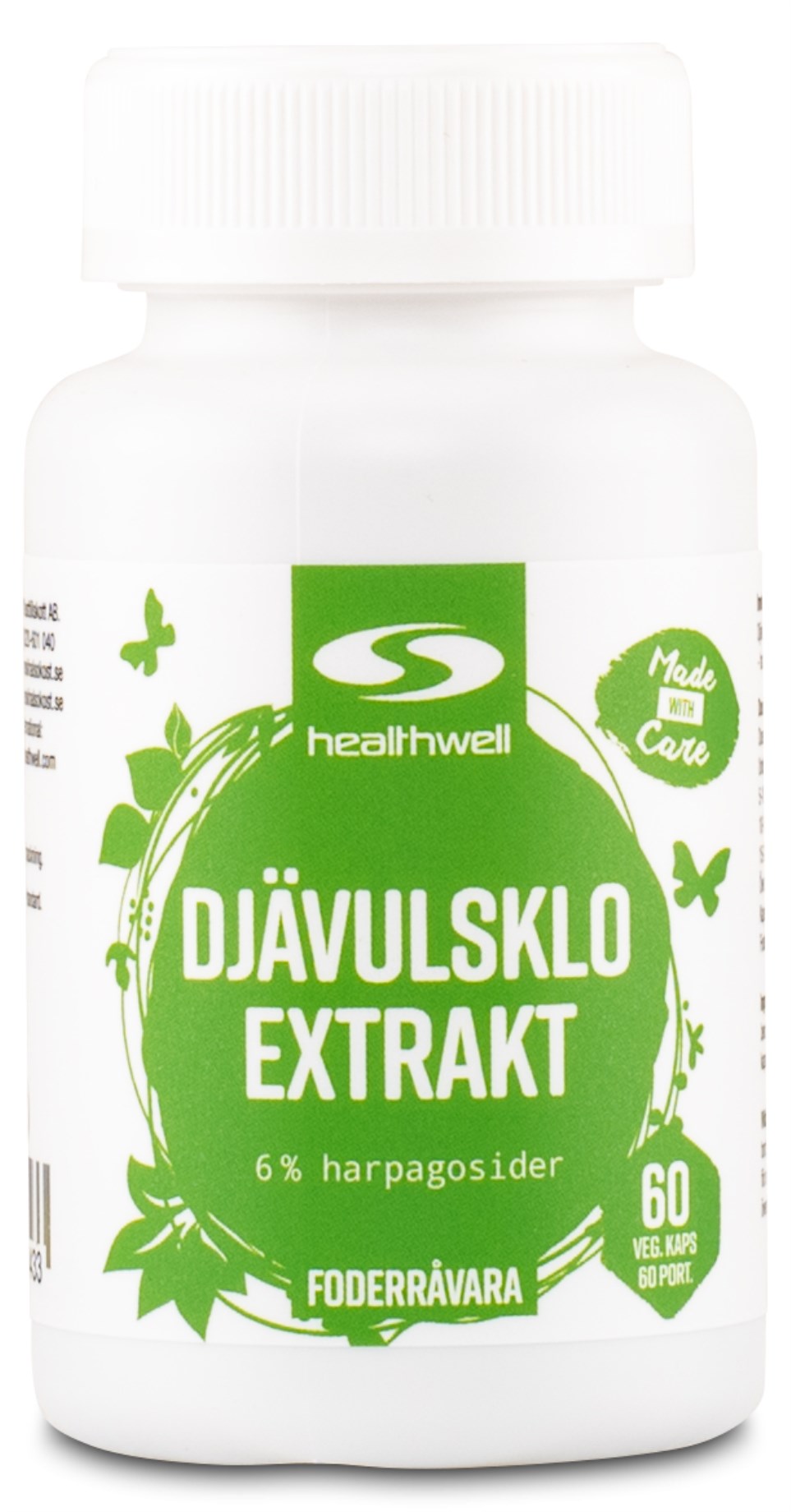 Heathwell Djævleklo Ekstrakt indeholder en høj dosis af Harpago-urt, også kaldet Djævleklo. Djævleklo har længe været brugt som et naturligt middel. Healthwells Djævleklo Ekstrakt indeholder 500 mg pr. kapsel og 6% harpagosider, som er den aktive ingrediens. Kapslen kan tages som den er eller tømmes og blandes med et måltid.