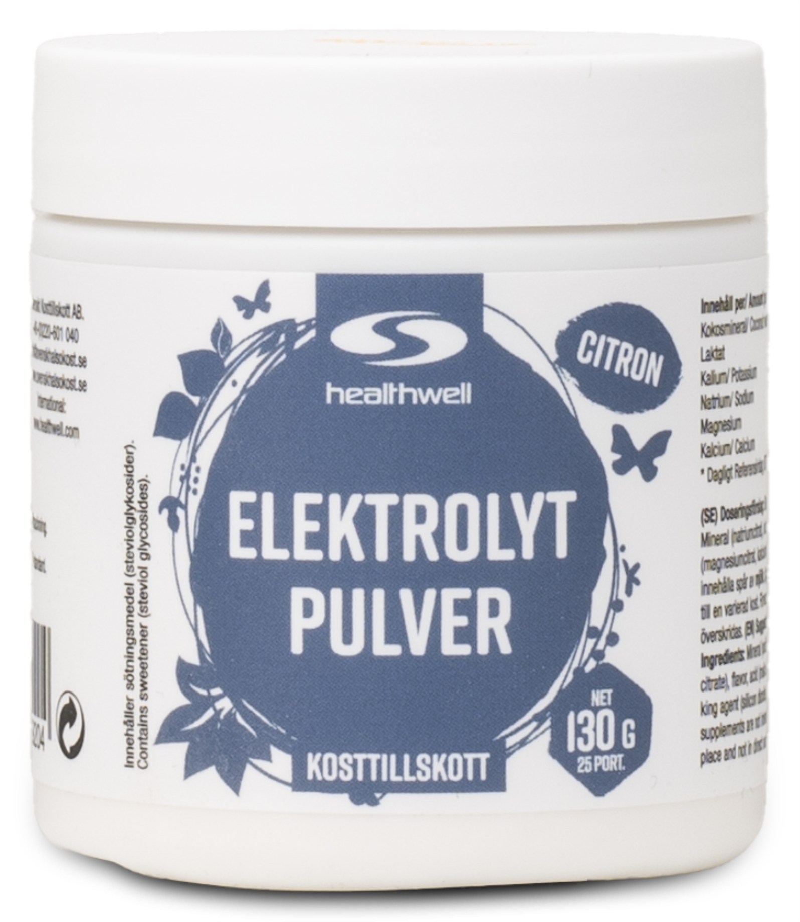 Healthwell Elektrolytpulver er let at drikke og bidrager til at fremme balancen af mineraler, væsker og salt i kroppen. Drikken indeholder mineraler fra naturlige kokosnødsmineraler og er sødet med stevia, altså helt uden unødvendigt tilsat sukker. Den er perfekt til dig, der træner intensivt eller udsætter kroppen for høje temperaturer, uanset om det er under træningen eller under en afslappende stund i saunaen.