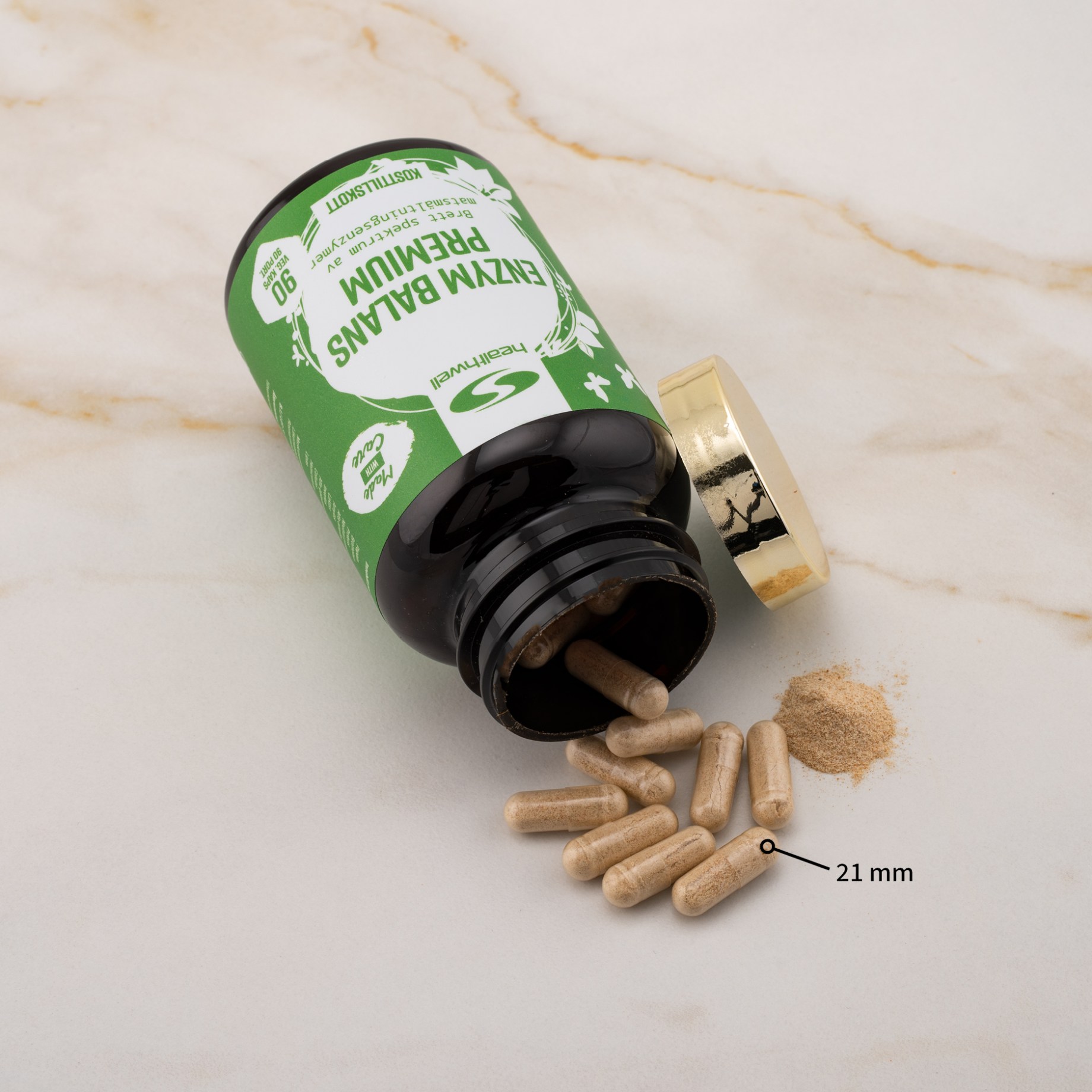 Enzymer er proteiner, der spiller en central rolle i vores fordøjelse. Deres opgave er at spalte og nedbryde maden til mindre bestanddele, hvilket gør det lettere for kroppen at optage næringsstoffer som kulhydrater, fedt, protein samt vigtige vitaminer og mineraler. Healthwell Enzym Balans Premium er et tilskud, der er beregnet til at fremme denne proces. Det anbefales at tage enzymer før måltider for straks at tilføre kroppen de nødvendige enzymer, der støtter fordøjelsen. Nogle af de enzymer, der indgår i Healthwell Enzym Balans Premium, er: