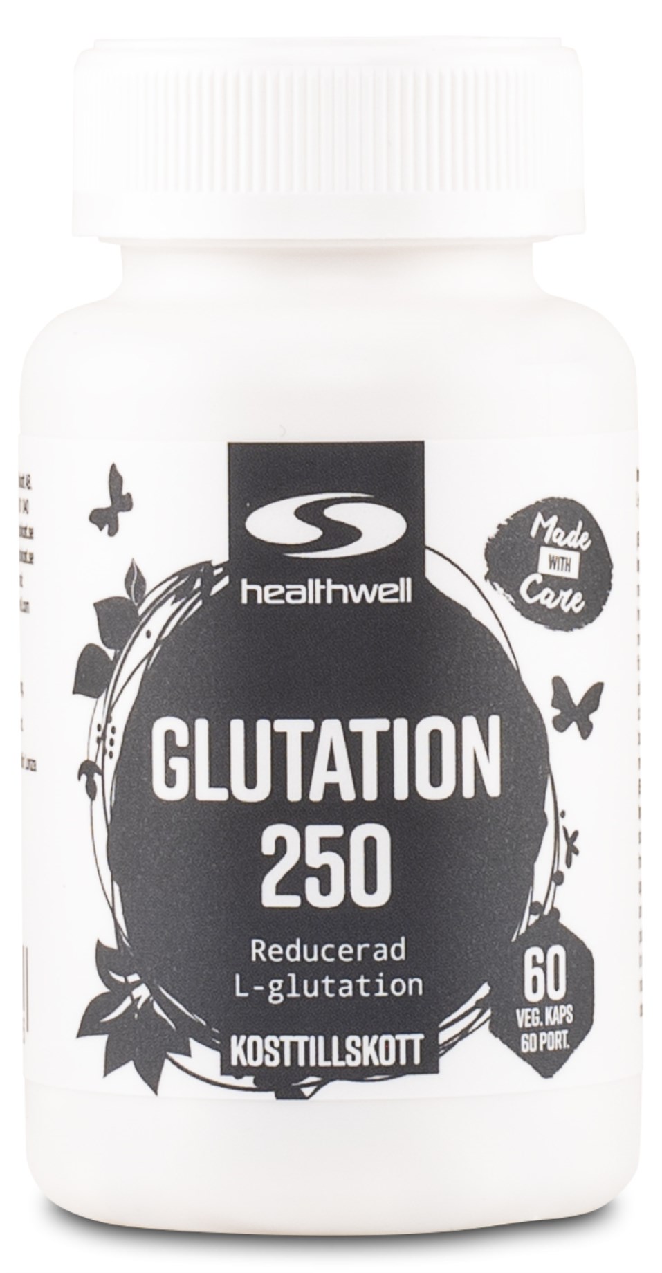Healthwell Glutathione 250 sikrer dit indtag af den kraftfulde antioxidant glutathion. Glutathion dannes naturligt i cellerne og understøtter kroppens immunforsvar, men også aktiveringen og funktionen af flere andre antioxidanter, såsom c-vitamin, e-vitamin, q10 og ALA. I tider hvor kroppen er udsat for meget stress, kan dannelsen af glutathion falde og så kan man med fordel støtte kroppen med tilskud af antioxidanten. Healthwell Glutathione 250 indeholder veganske og syrefaste kapsler, så stoffet kan passere gennem maven uden at blive ødelagt.