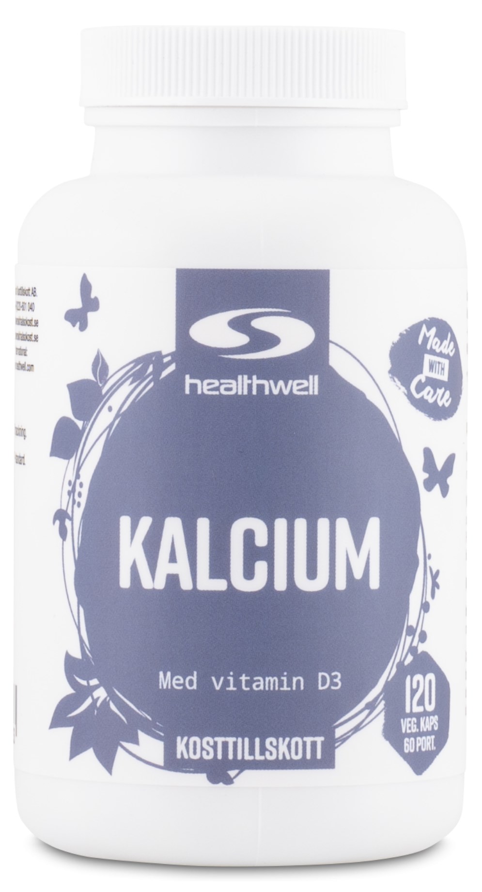 Kalcium er det mineral, som der findes mest af i kroppen, og som opbygger meget af knoglerne og tænderne, men det findes også frit i blodet.Der er brug for kalcium til en normal knoglestruktur, og det bidrager også til fordøjelsesenzymernes normale funktion. Kalcium fra HealthWell er et højdoseret kalciumtilskud med en kelateret form for kalcium, som gør det mere tilgængeligt for kroppen at optage. Desuden er der tilsat vitamin D, som hjælper til at regulere kalciumbalancen i blodet.