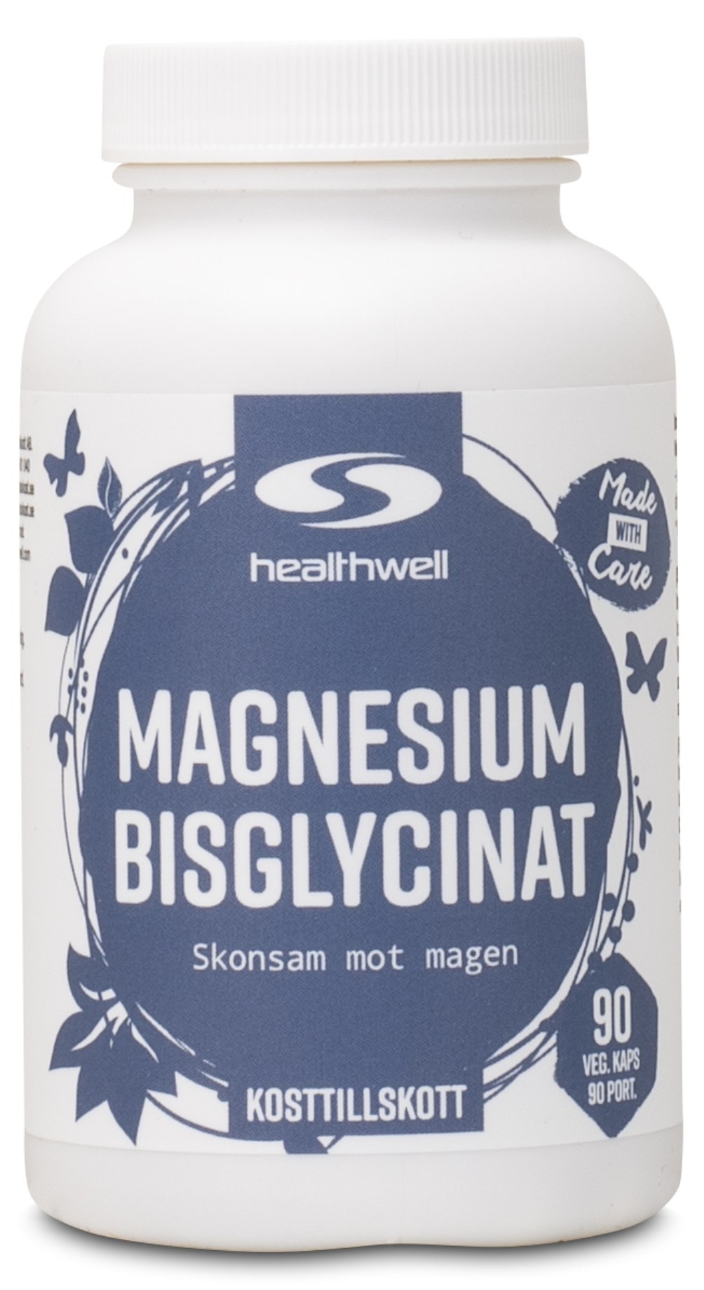 Healthwell Magnesiumbisglycinat indeholder magnesium, som er bundet til aminosyren glycin. Magnesiumbisglycinat giver en højere biotilgængelighed på grund af glycin, som kroppen meget nemt kan identificere og transportere gennem tarmslimhinden. Derefter kan magnesium optages, og transporteres til cellerne. En sandsynlig årsag til, at netop magnesiumbisglycinat har en særligt høj biotilgængelighed er, at glycin forbedrer opløseligheden i tilskuddet, og dermed også gør den nemmere for kroppen at optage det. Hvis du normalt har følsomhed mod magnesium, kan du desuden opleve mindre mavebesvær med magnesiumbisglycinat, så hvis du vil have et tilskud af magnesium, kan denne lettilgængelig form være et udmærket alternativ.