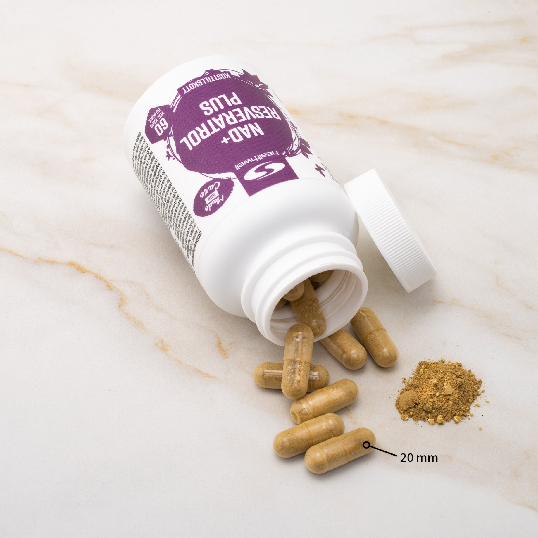 Healthwell NAD+ Resveratrol Plus er et omhyggeligt designet produkt med flere omtalte stoffer i fremragende former og doseringer. NAD+ og resveratrol er en fremragende kombination, der samarbejder for at opnå den bedste mulige effekt, her sammen med flere stoffer, der på forskellige måder forstærker dem.