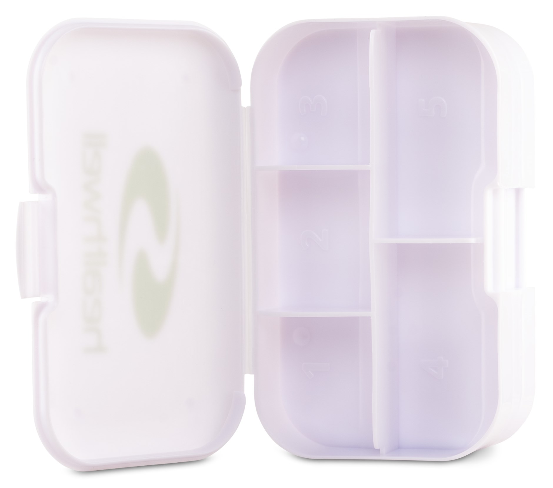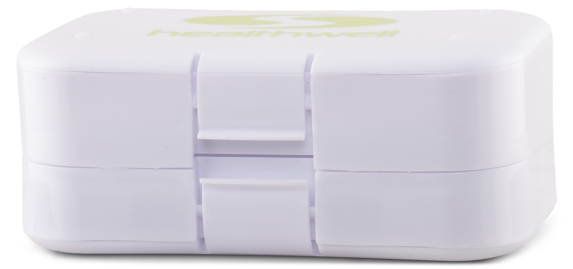 Healthwell Pill Box er en pilleæske, der er fremragende til at organisere dine kosttilskud. Praktisk at have med, når du er ude at rejse. Du kan organisere dig for 7 dage frem, men der er også 5 ekstra opbevaringsrum. Fremragende til at se, hvilken dosis du har taget eller ikke. Hvert rum har en lås, så du kan være sikker på, at pillerne bliver, hvor du lægger dem.