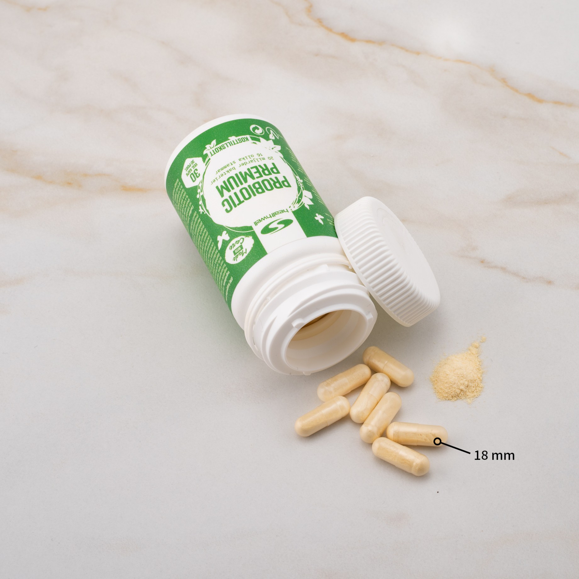 Probiotic Premium er et højdosistilskud med mavevenlige bakterier.