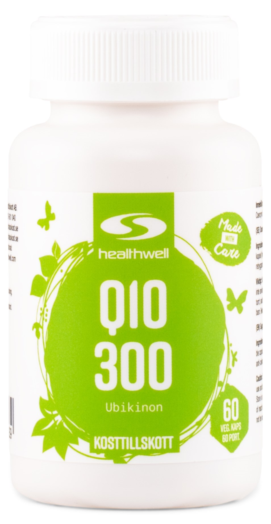 Q10 300 fra Healthwell er det mest højdoserede tilskud af rent Q10 på markedet. Q10 300 fås i vegetabilske kapsler, og indeholder Coenzym Q10, som også kaldes ubiquinon, hvilket er let for kroppen at optage. Desuden indeholder Healthwell Q10 300 tilsat MCT-olie fra kokosnødder for en optimal optagelse, da Q10 er et fedtopløseligt stof. Q10 er et vitaminlignende stof, et stof, der findes naturligt i vores celler, og har en vigtig rolle i kroppens energiomsætning. Ved Q10-mangel kan du derfor føle dig træt og kraftesløs. Q10 har desuden antioxiderende virkninger, som beskytter kroppens celler mod nedbrydning af frie radikaler.
