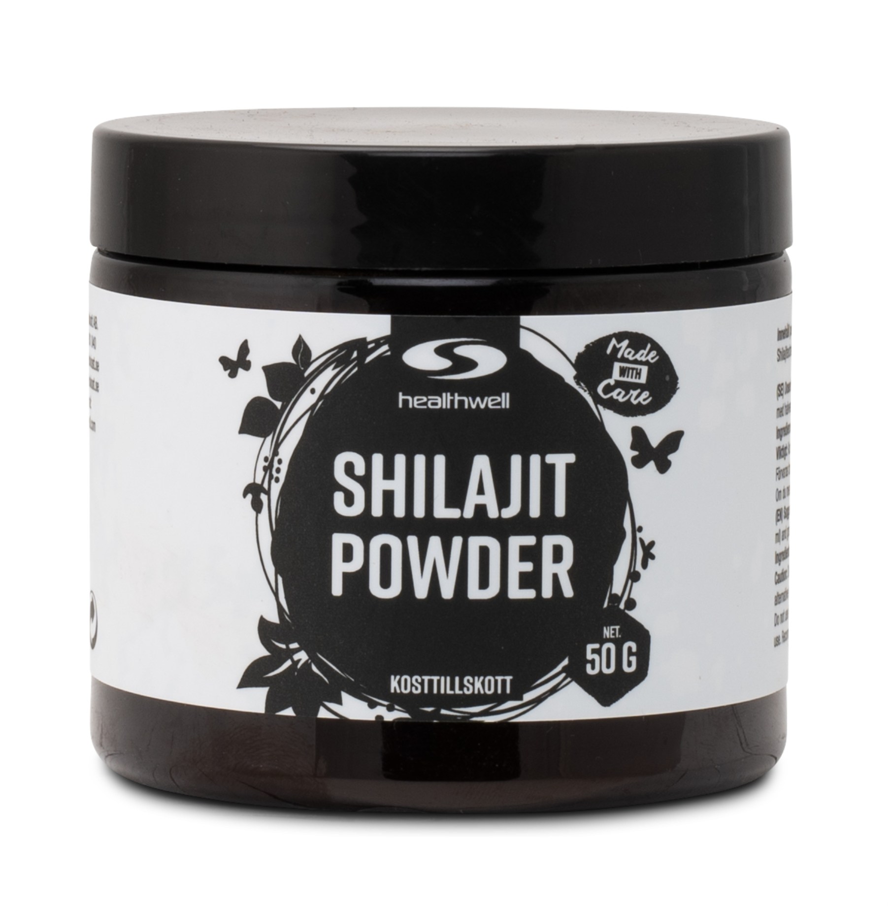 Shilajit udvindes traditionelt fra højtliggende bjergområder. Det kaldes nogle gange for "bjergblod" – et navn, der refererer til dets mørke farve, kraftfulde smag og lange tradition for anvendelse. Shilajit indeholder blandt andet humusstoffer, der udgør en stor del af dets sammensætning og har evnen til at binde sig til stoffer fra omgivelserne. Healthwells shilajit gennemgår grundige tests for at udelukke tungmetaller og garantere højeste kvalitet.