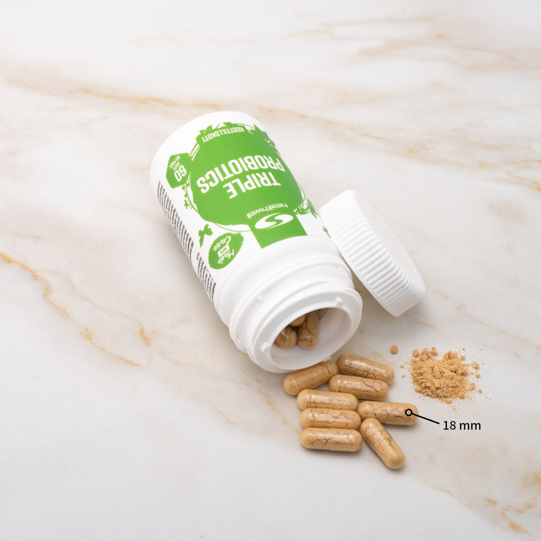 Healthwell Triple Probiotics kapsler er designet til at modstå mavesyre og sikre, at bakterierne når tarmen, hvor de gør mest gavn. Dette forbedrer bakteriernes overlevelse og effektivitet i tarmfloraen.
