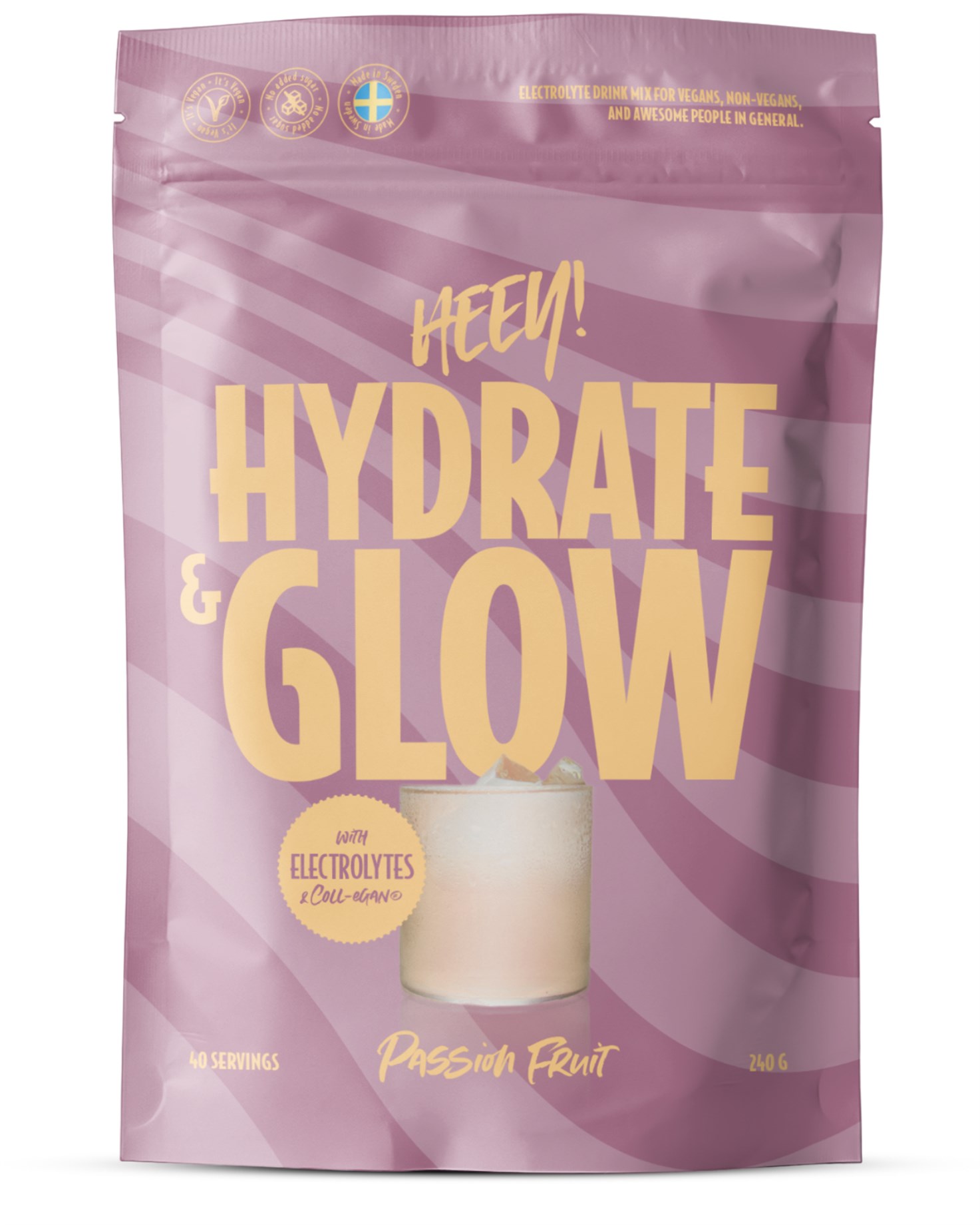 Boost din hud og genopret væskebalancen med HEEY Hydrate & Glow. HEEY Hydrate & Glow indeholder en unik blanding af elektrolytter og ingredienser såsom Coll-egan® (vegansk kollagenbooster), hyaluronsyre og Q10 for at pleje huden indefra. Huden får et nærende boost, mens væske- og elektrolytbalancen genoprettes. Perfekt som en del af din daglige skønhedsrutine eller for at starte dagen rigtigt, især på varme dage. Fås i to lækre smagsvarianter.