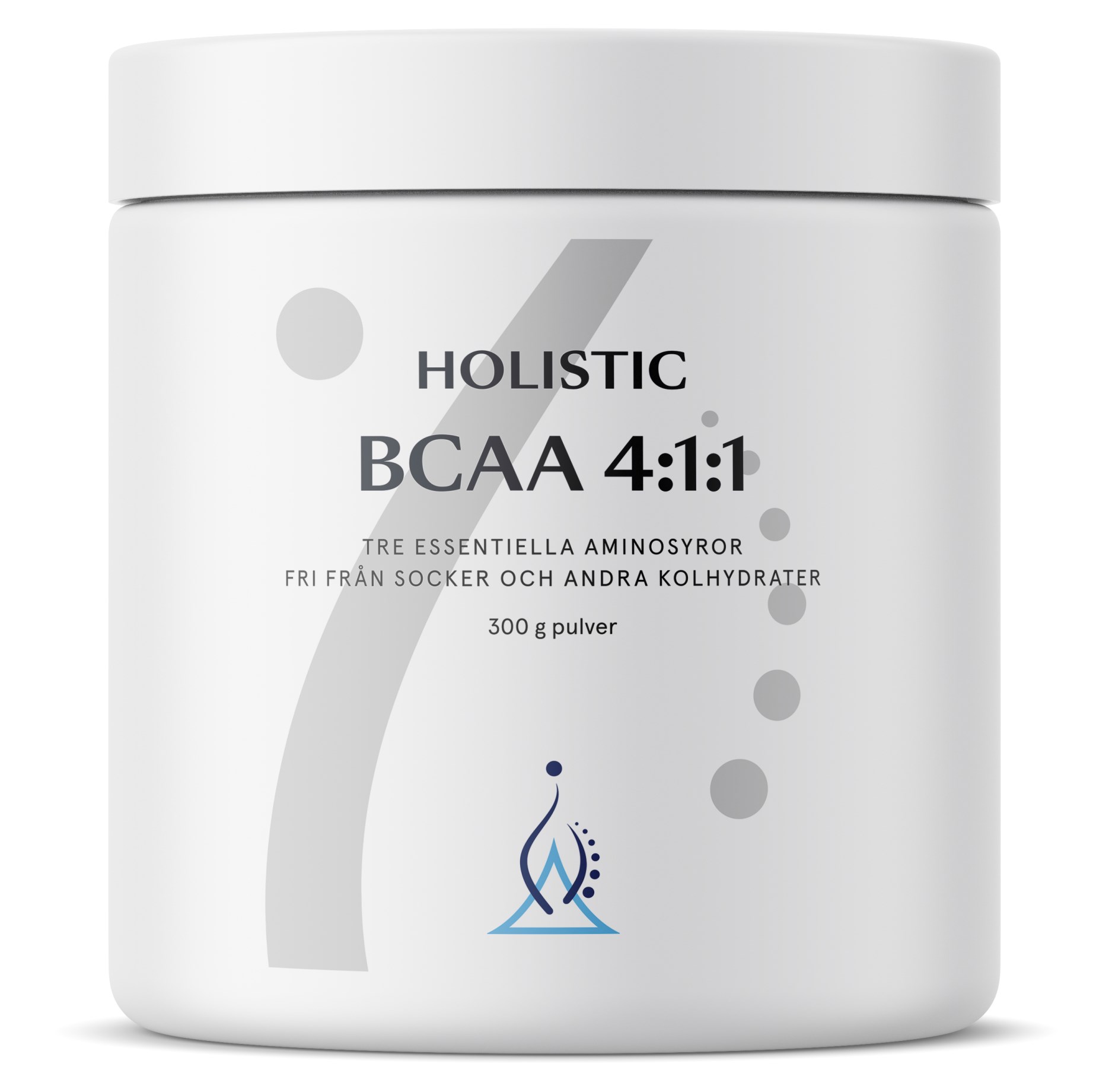 Holistic BCAA er et pulver, der består af de tre aminosyrer leucin, isoleucin og valin i fri form. Det faktum, at de er i fri form, betyder, at de allerede er opdelt i de mindste mulige dele, hvilket betyder, at kroppen let kan absorbere dem og straks bruge dem som byggesten til musklerne. Når man indtager en proteinrig kost, absorberer kroppen også proteinet, men det tager meget længere tid, fordi næringsstofferne skal nedbrydes, før de kan optages af kroppen. BCAA er et populært supplement at tage lige før, under eller efter styrketræning netop fordi det går ud i kroppen så hurtigt og bidrager til muskelopbygning. Holistic BCAA indeholder ingen smagsstoffer og ingen kulhydrater, så selv du, der går på diæt, kan bruge kosttilskuddet.
